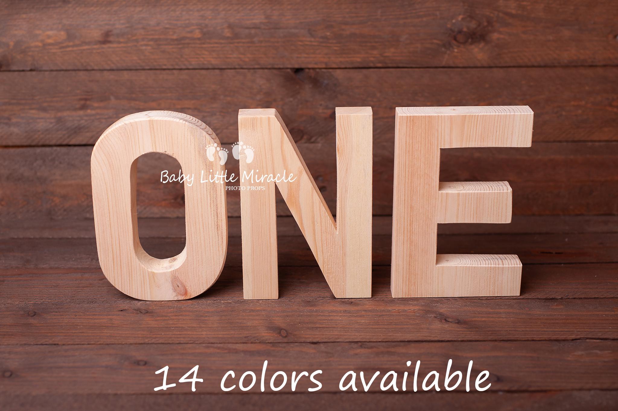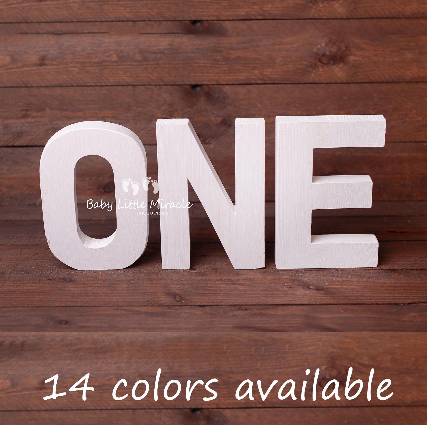 Wooden ONE, 13 colors, photo prop for first birthday, Number one, S...