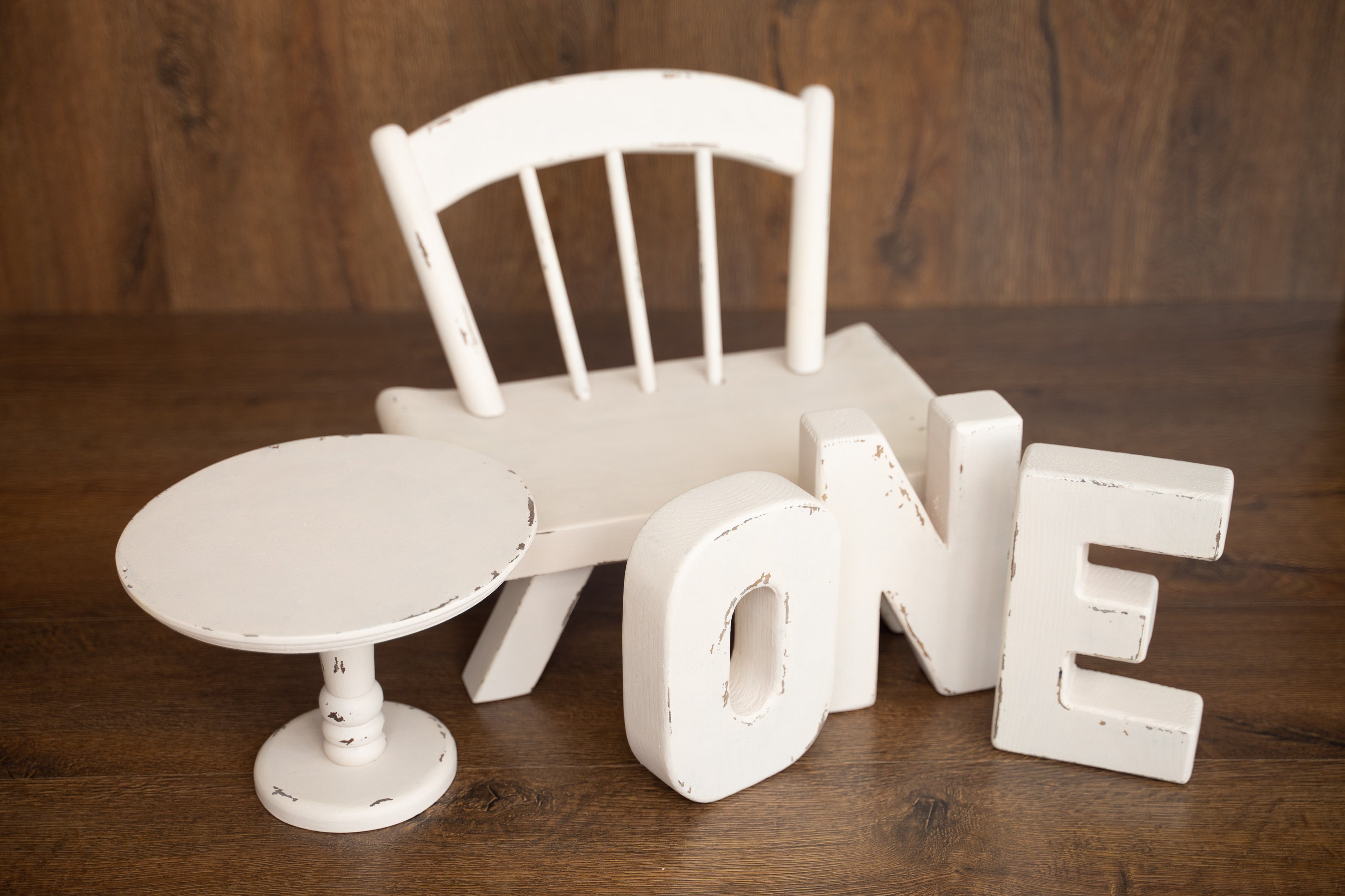 Newborn Wooden Chair and 'ONE' Letters Set, Cake Smash Props,Photog...