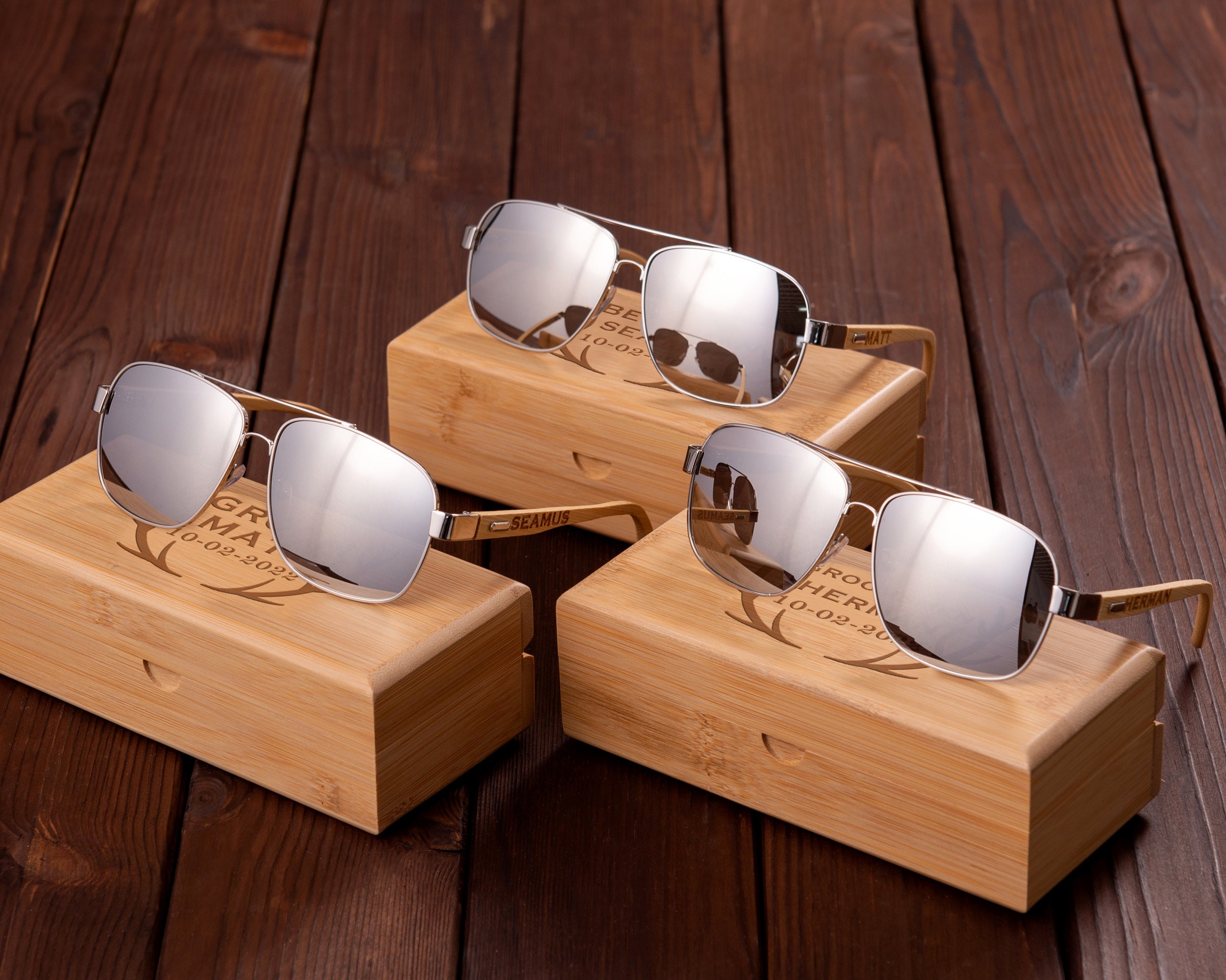 Groomsmen Gifts, Personalized Mens Sunglasses in Wooden Gift Box, G...