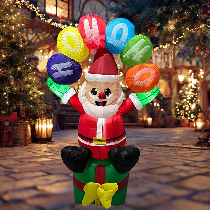 Christmas sitting on a gift box holding a sign Santa Claus LED lumi...