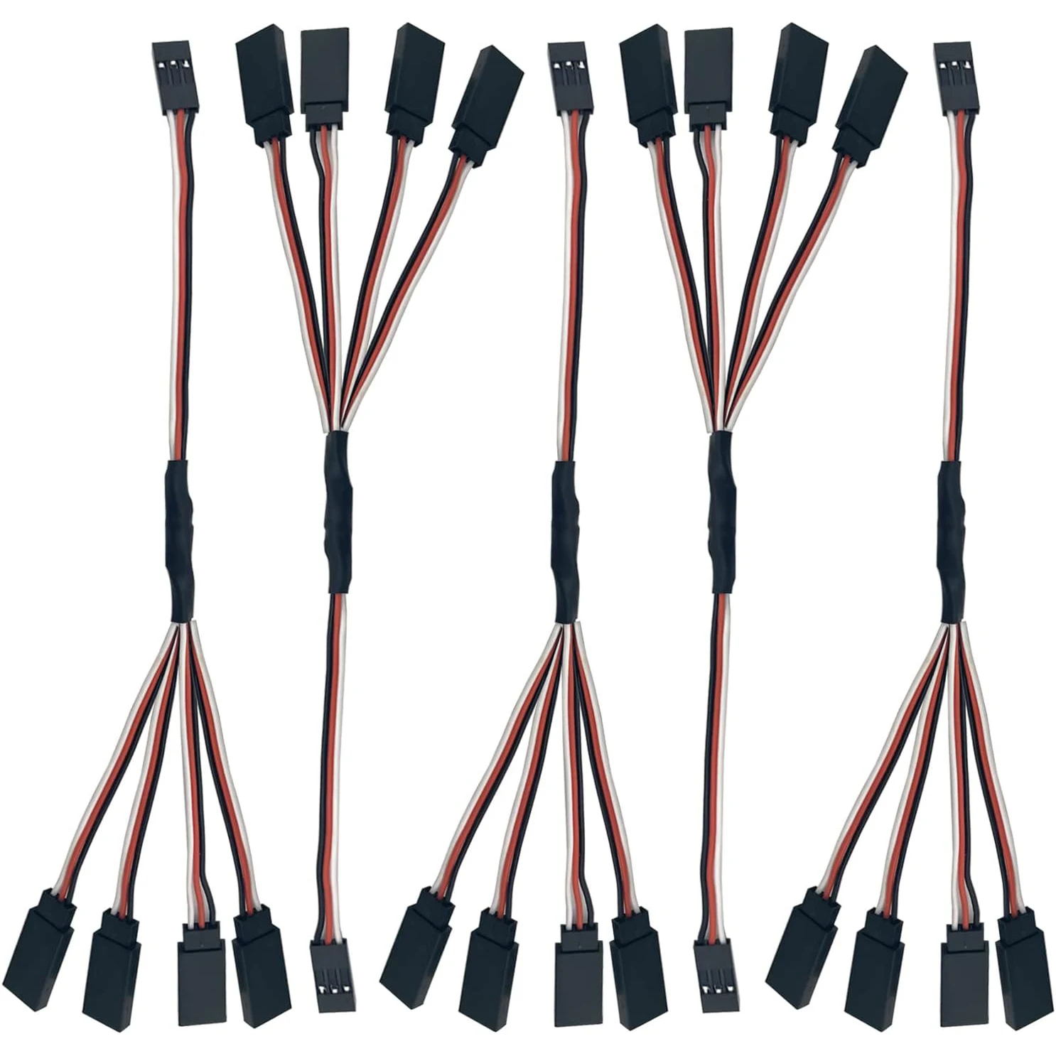 5pcs JR Y Connector Servo Extension Cable 3 Pin JR Plug Splitters 1 Male to 4 Female Servo Y Extensi...