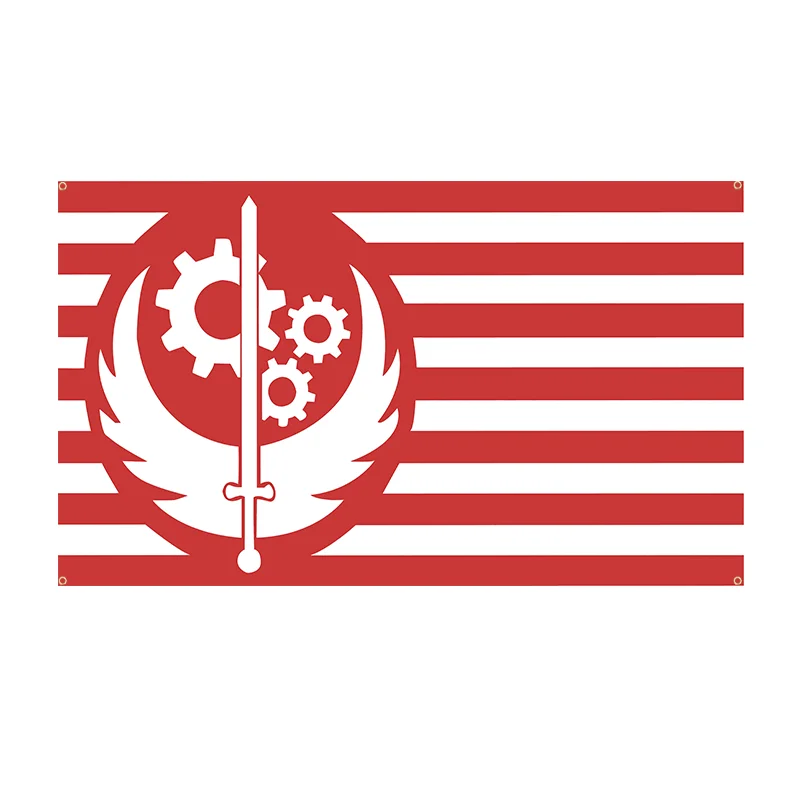 Brotherhood of Steel Flag,Red & White Striped with Gear and Swo...