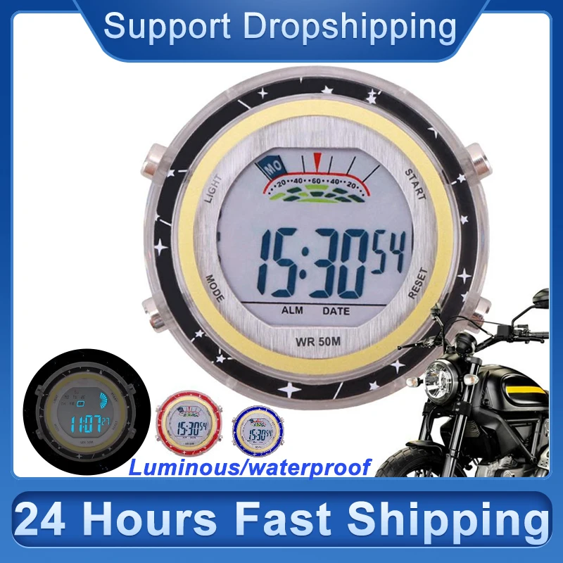 Motorcycle Clock Glowing Dial Motorcycle Handlebar Watch Stick-On Motorbike Mount Watch Digital Cloc...