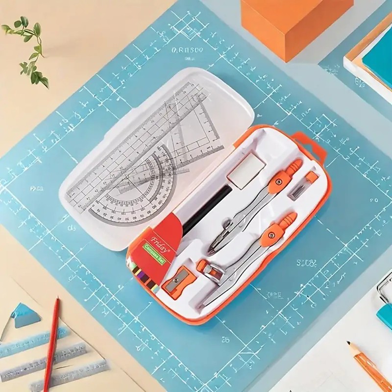 10pcs Geometry Compasses Set With Storage Box Rulers Protractor Com...