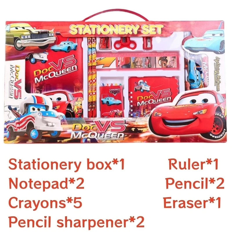 Disney Lightning McQueen Stationery Set Frozen Pencil Case Pencil Crayon Ruler Eraser Notepad Set Mi...