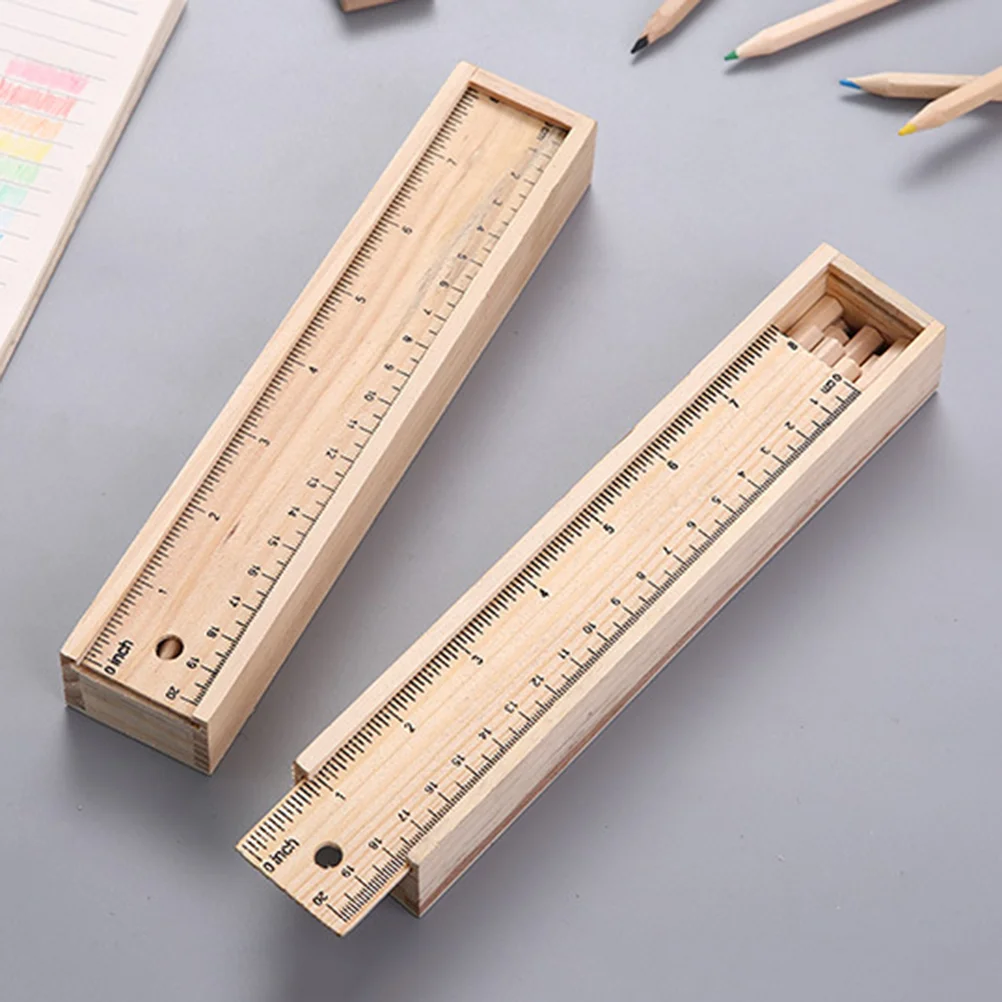 Drawer Type Pen Box Portable Wooden Pencil Case Simple Stationery Storage Case for School Kids