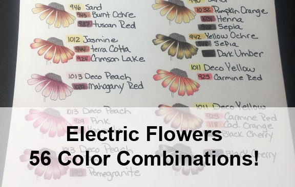 56 Electric Flower Color Combinations with a blank worksheet for your own color combos using Prismac...