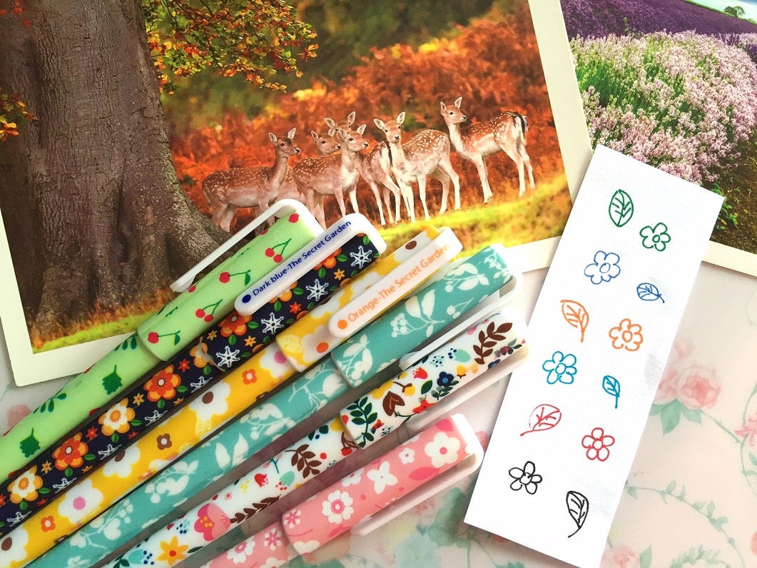 cute pen set 6 Happy diary pen flower themed gift flower pen gel in...