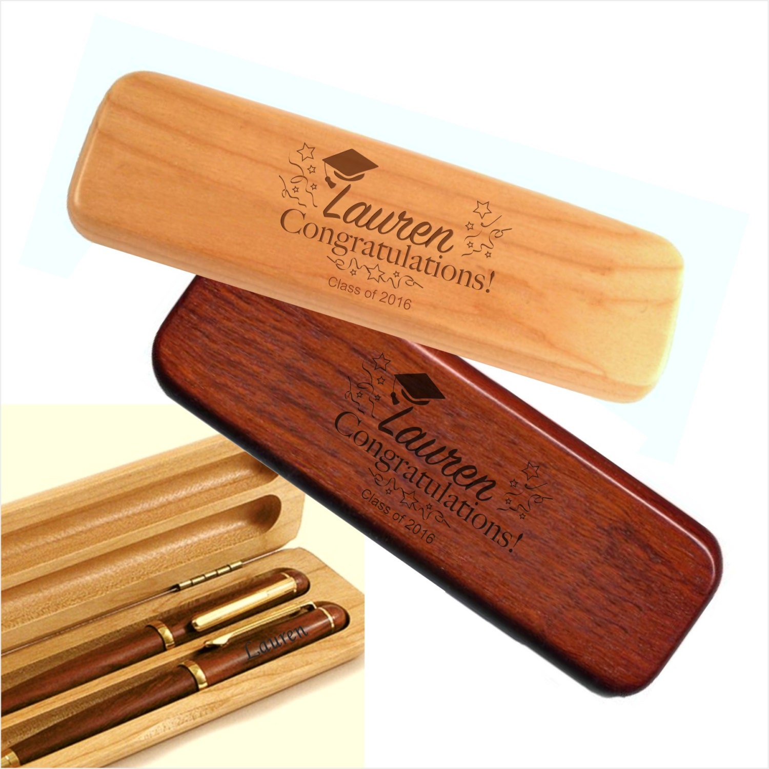 Personalized Graduation Wood Double Pen Set - Engraved wood pen pre...