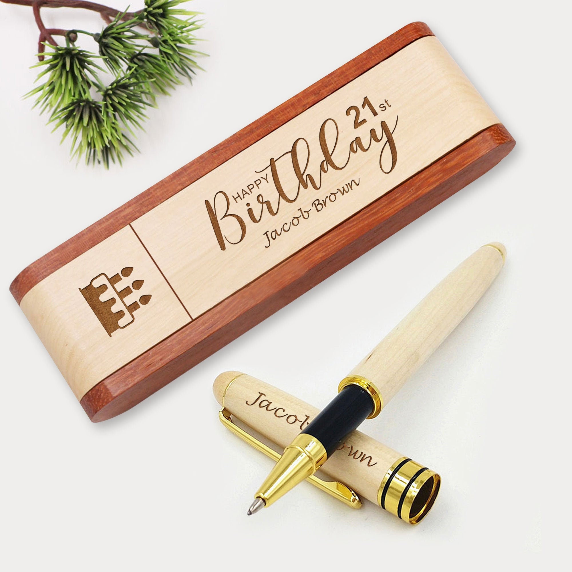 Personalised Pen Engraved Natural Wooden Ballpoint Pen with Gift Bo...