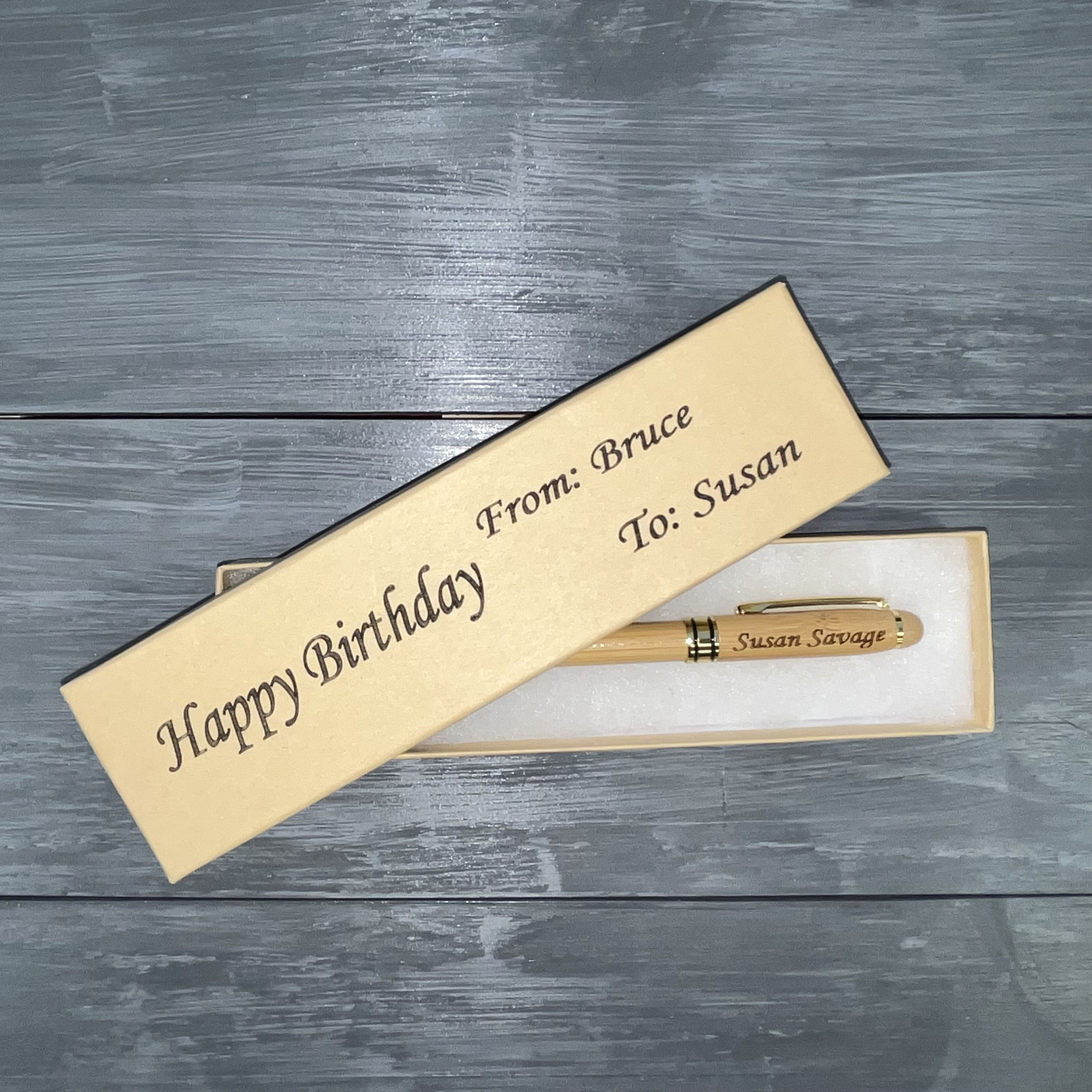 "Personalized Engraved Wood Ballpoint Pen, FREE Gift Box Engraving, Custom Pens, Bamboo Pen, Ma...