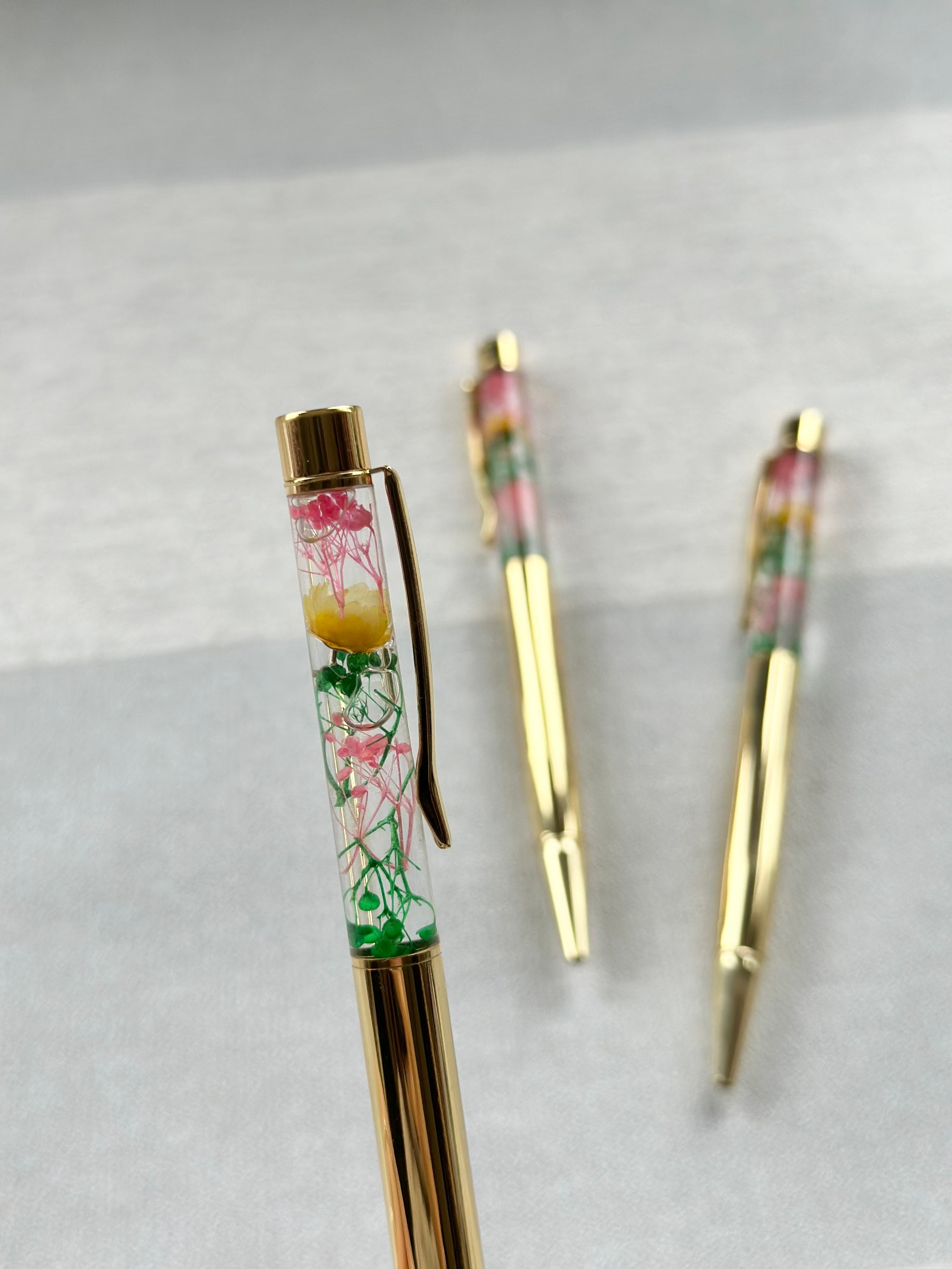 Gold Flower Pens, Dried flowers, Stationery, Office Supplies, Gold ...