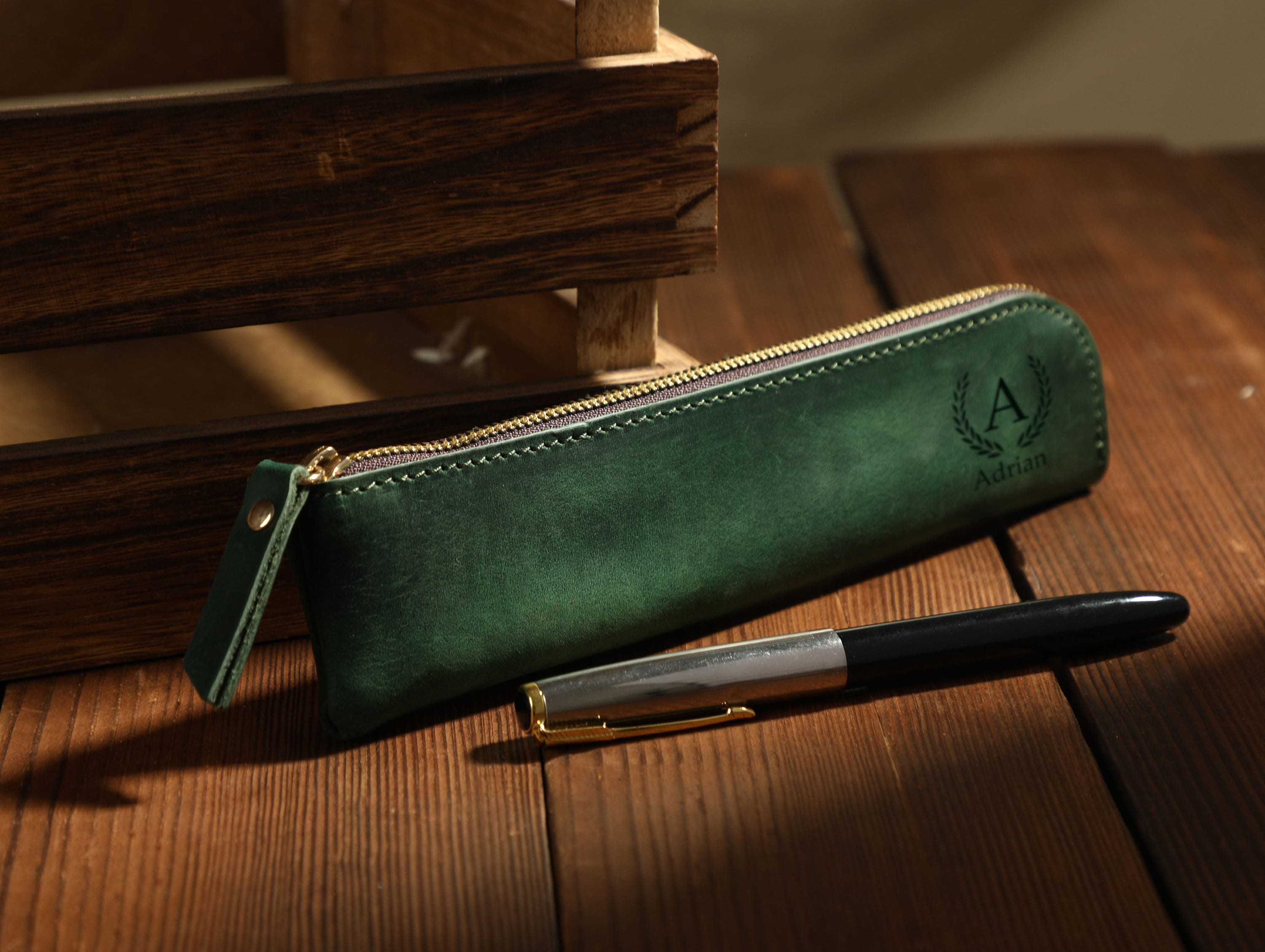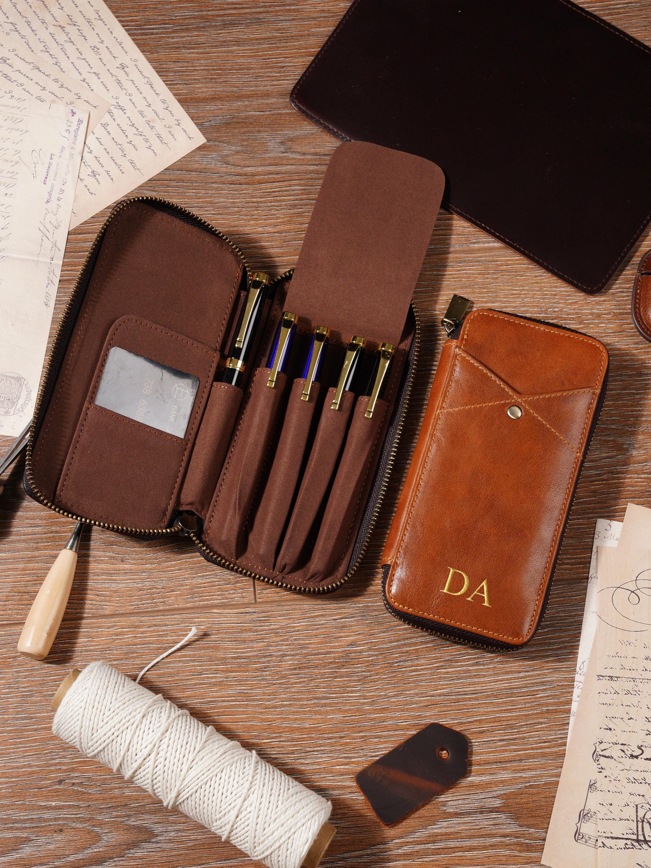 Leather Pen Holder, Personalized Leather Pen Pouch, Customized Leat...