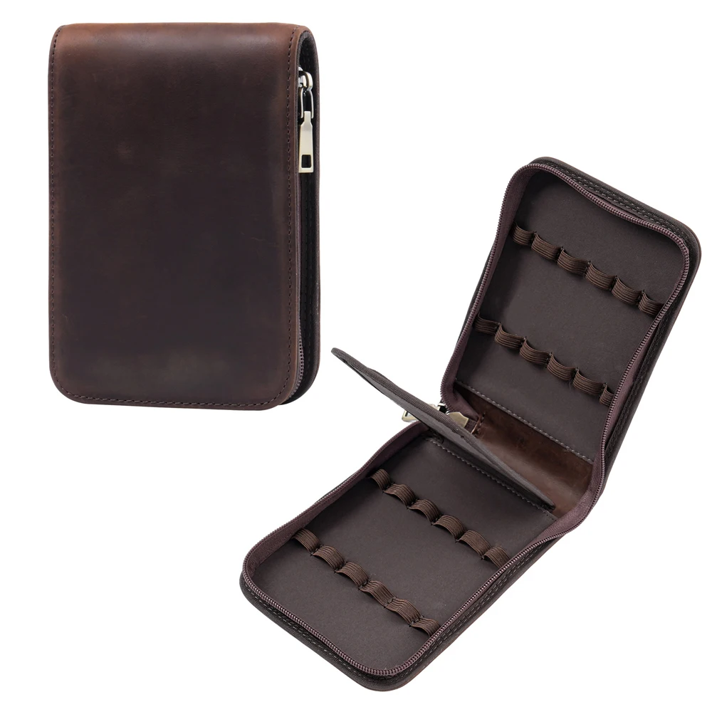 Genuine Leather 12-Slot Pen Case Vintage Zipper Pouch Organizer Large Capacity Multi-Pen Holder for ...