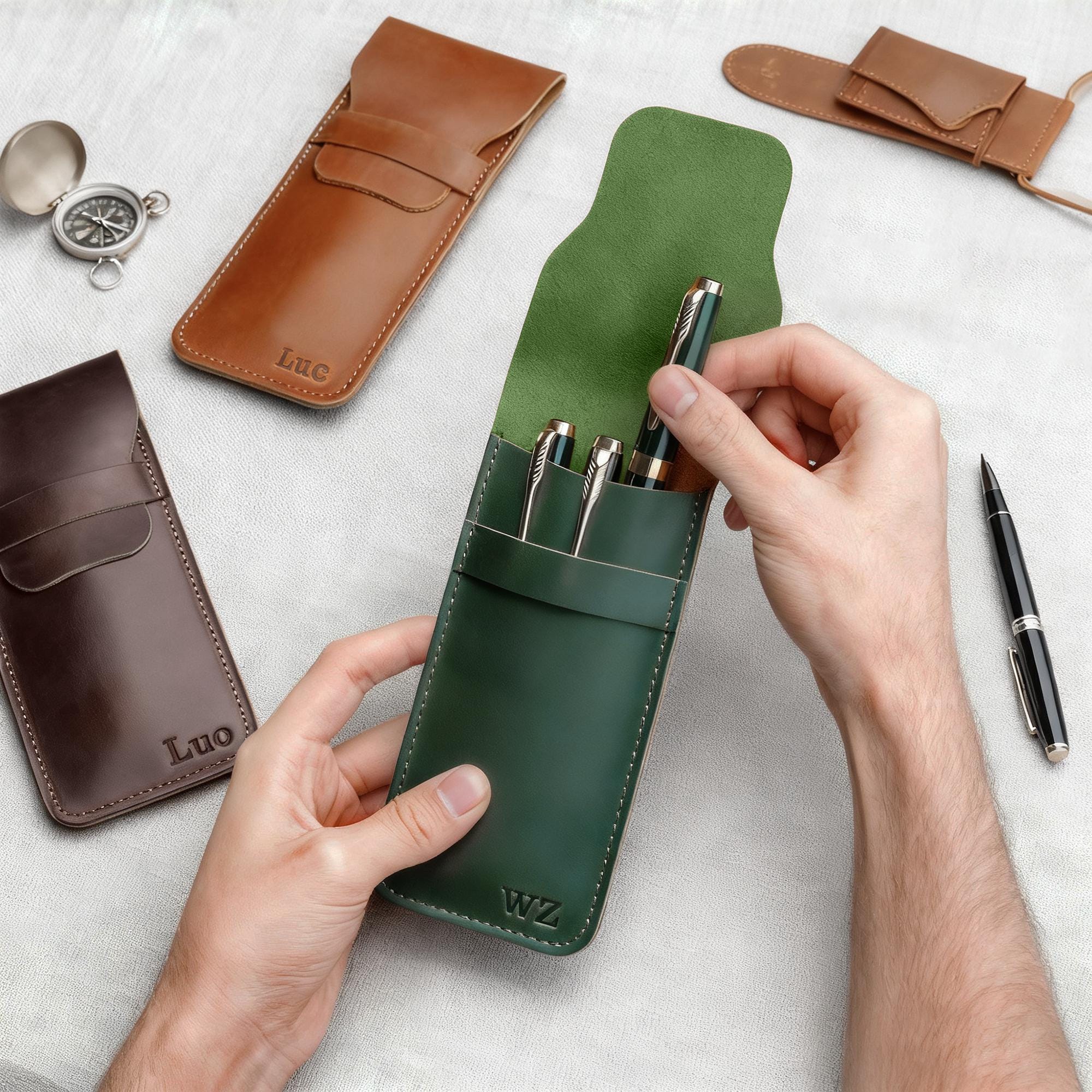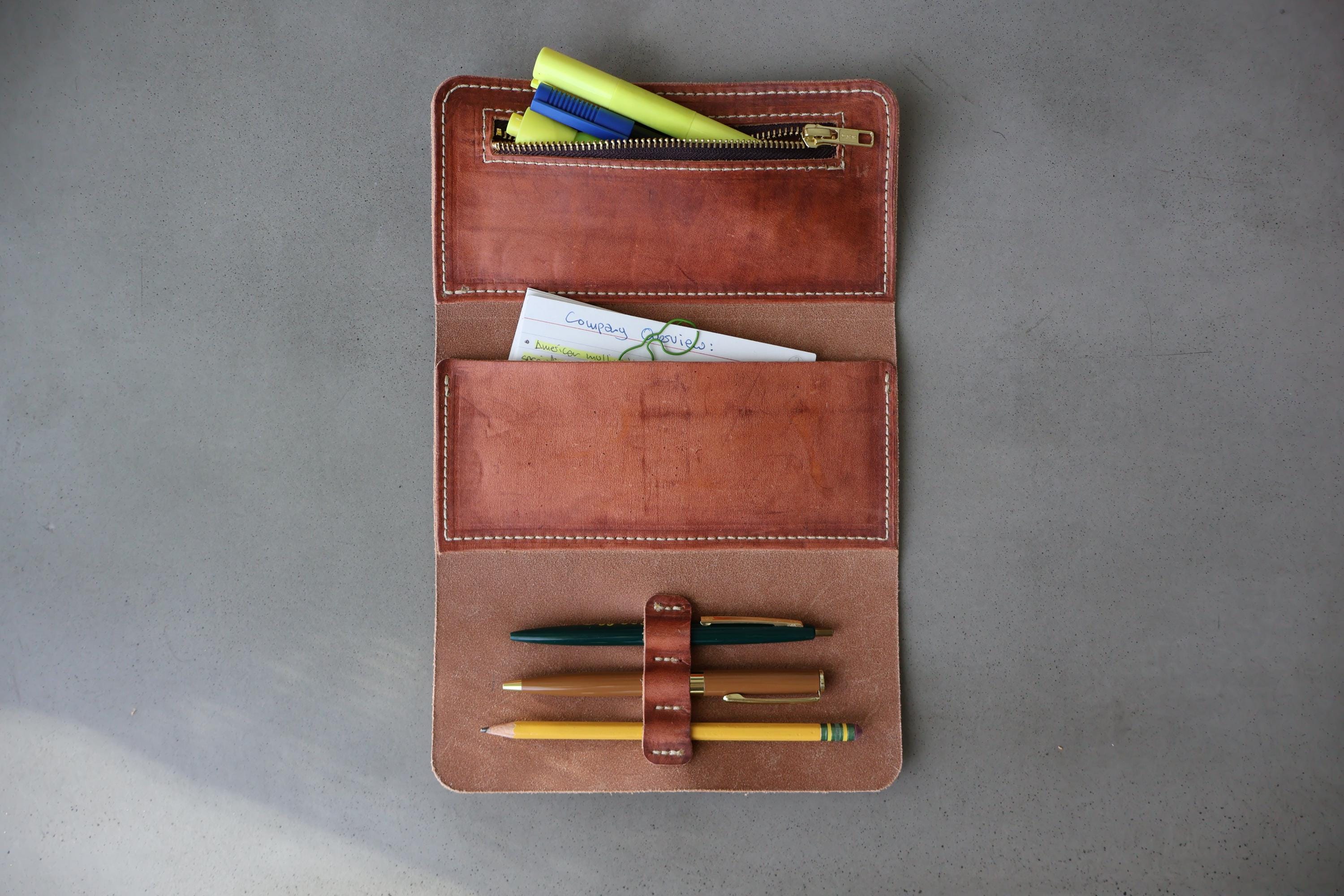 Handmade Genuine Leather Pen Holder, Custom Leather Pen Case, Leath...
