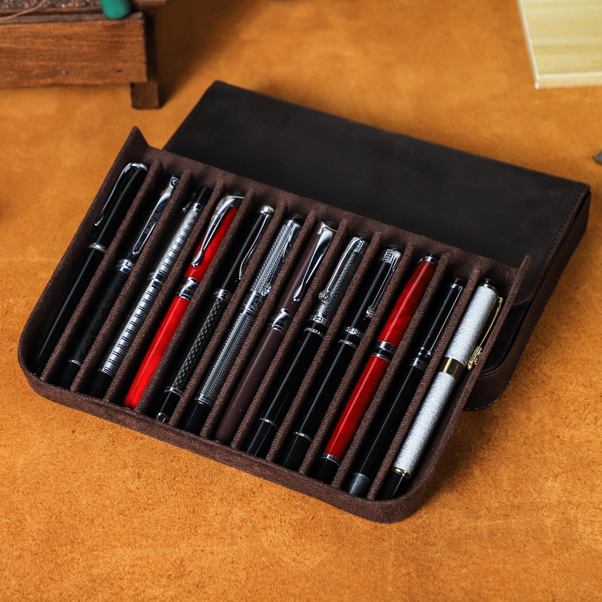 Personalized pen storage case, 12 fountain pen case, Leather pen ca...