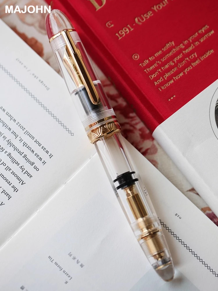 MAJOHN P140 Transparent Fountain Pen Sun Nib Metal Copper Piston Light Resin Body PK X159 9019 Stati...