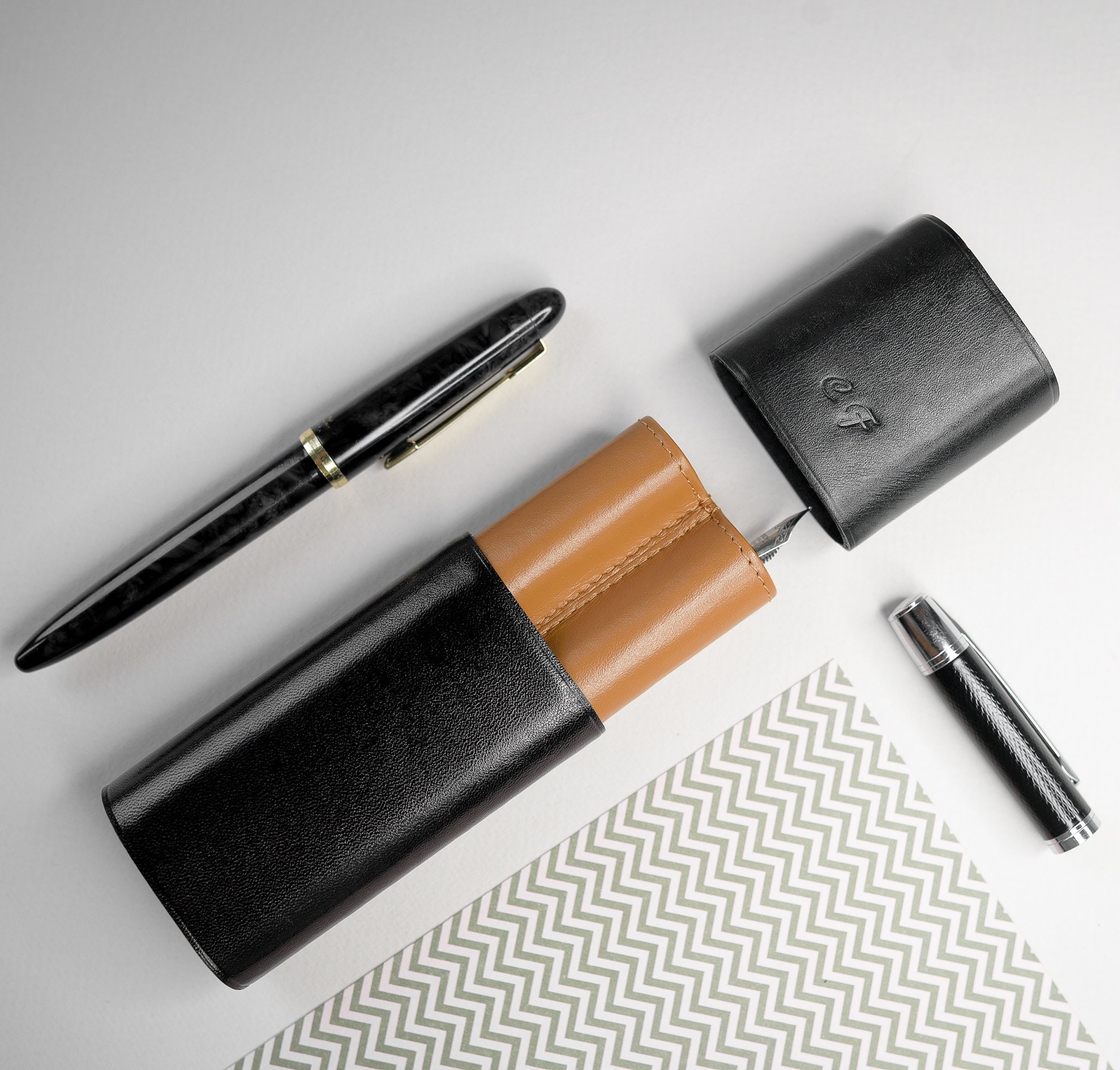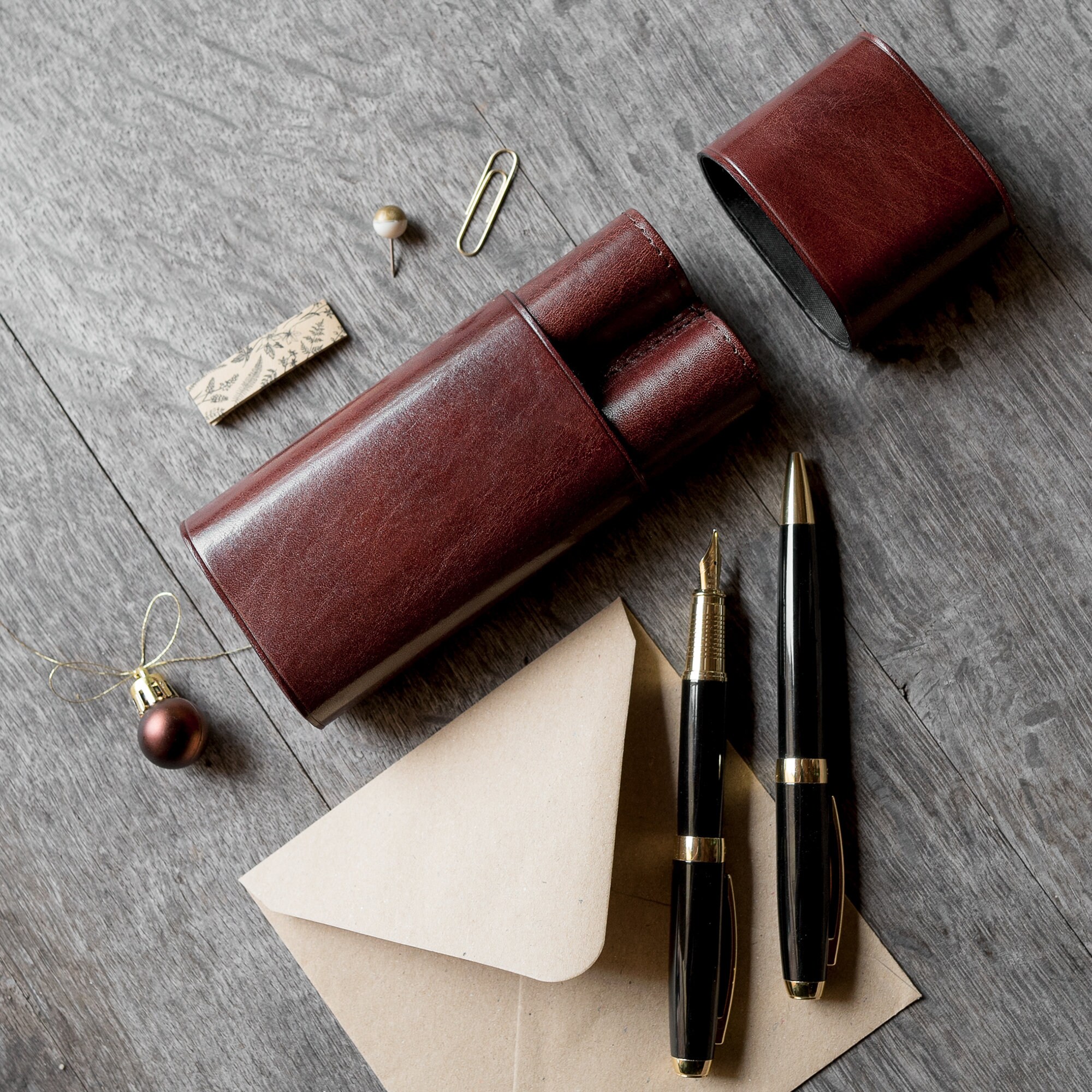 Leather pen case 2 pen, Fountain pen case for men, Two pen sleeve, ...