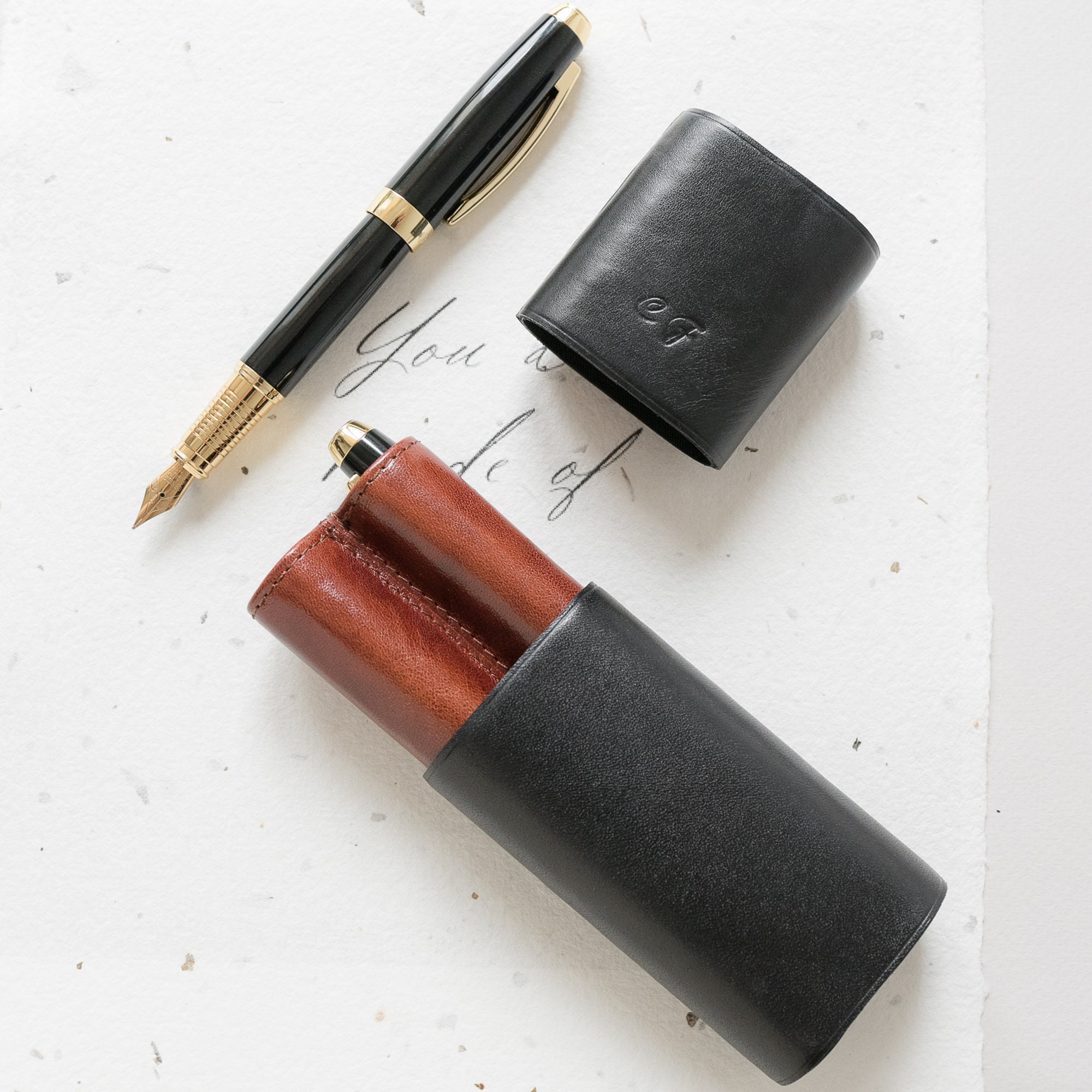 "Leather Case for Fountain Pens, unique tube-shaped design that can be customized to fit any fo...