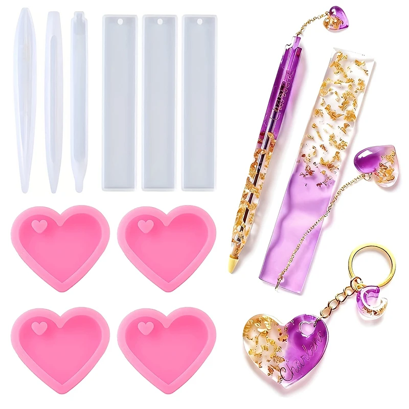 Transparent Pen Bookmark Heart-Shaped Keychains Silicone Resin Mold Set Epoxy Resin Casting Molds fo...
