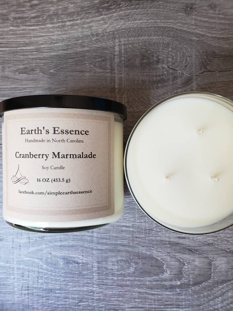Cranberry Marmalade 16 Oz 3-Wick Soy Candle, Large Candles, Fall Sc...