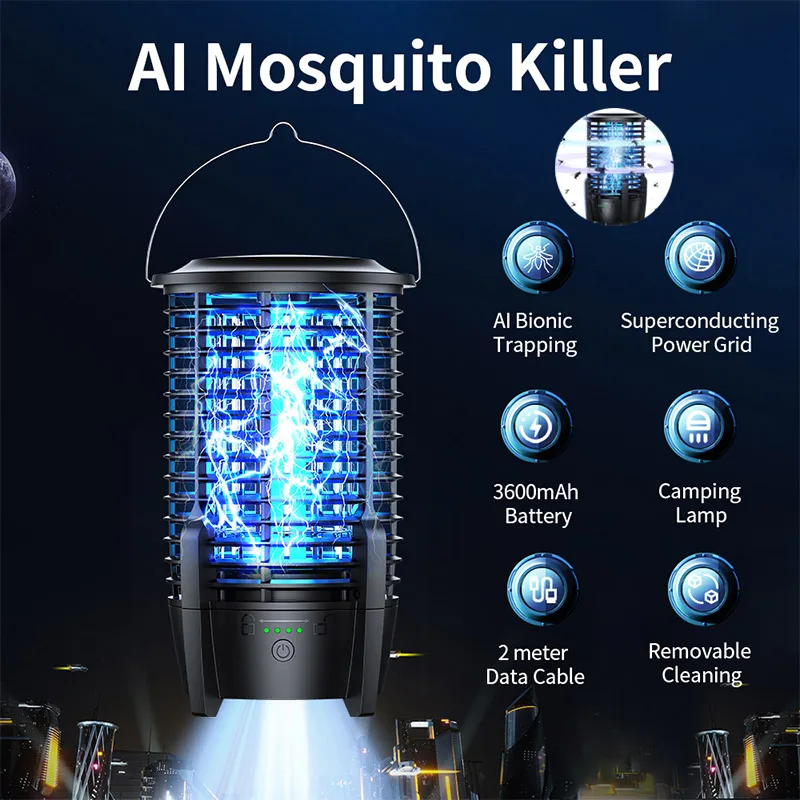 Electric Mosquito Swatter Rechargeable Mosquito Killer Lamp Household Outdoor Fly Trap Flies Insect ...