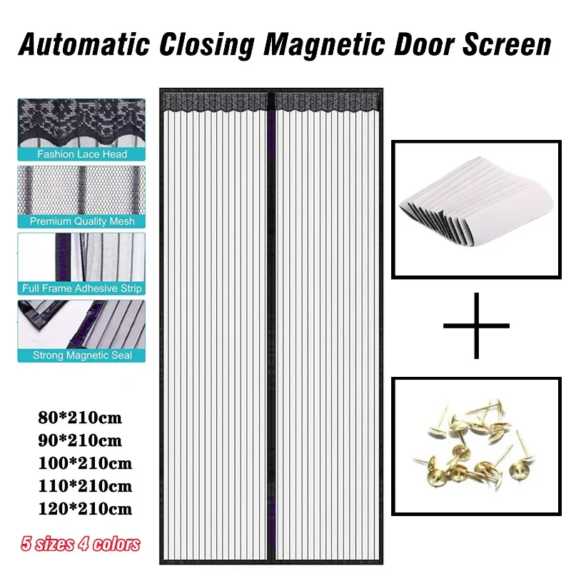 5 Size Punch-free Magnetic Mosquito Net Anti Bug Insect Fly Mesh Door Curtain Automatic Closing Scre...