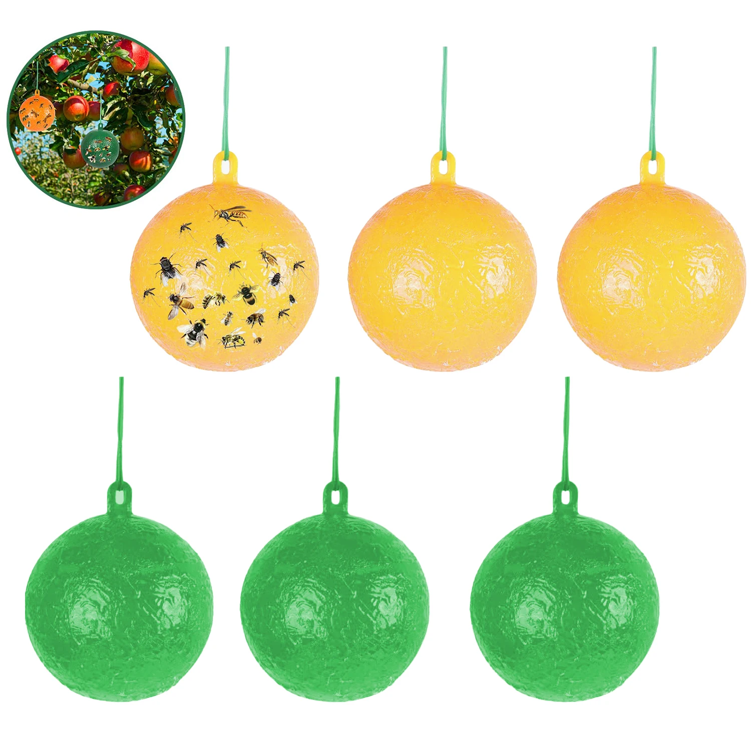 8cm Fruit Fly Needle Bee Lure Insect Ball Hanging Fly Trap Glue Ball Sticky Worm Ball for Orchard Ga...