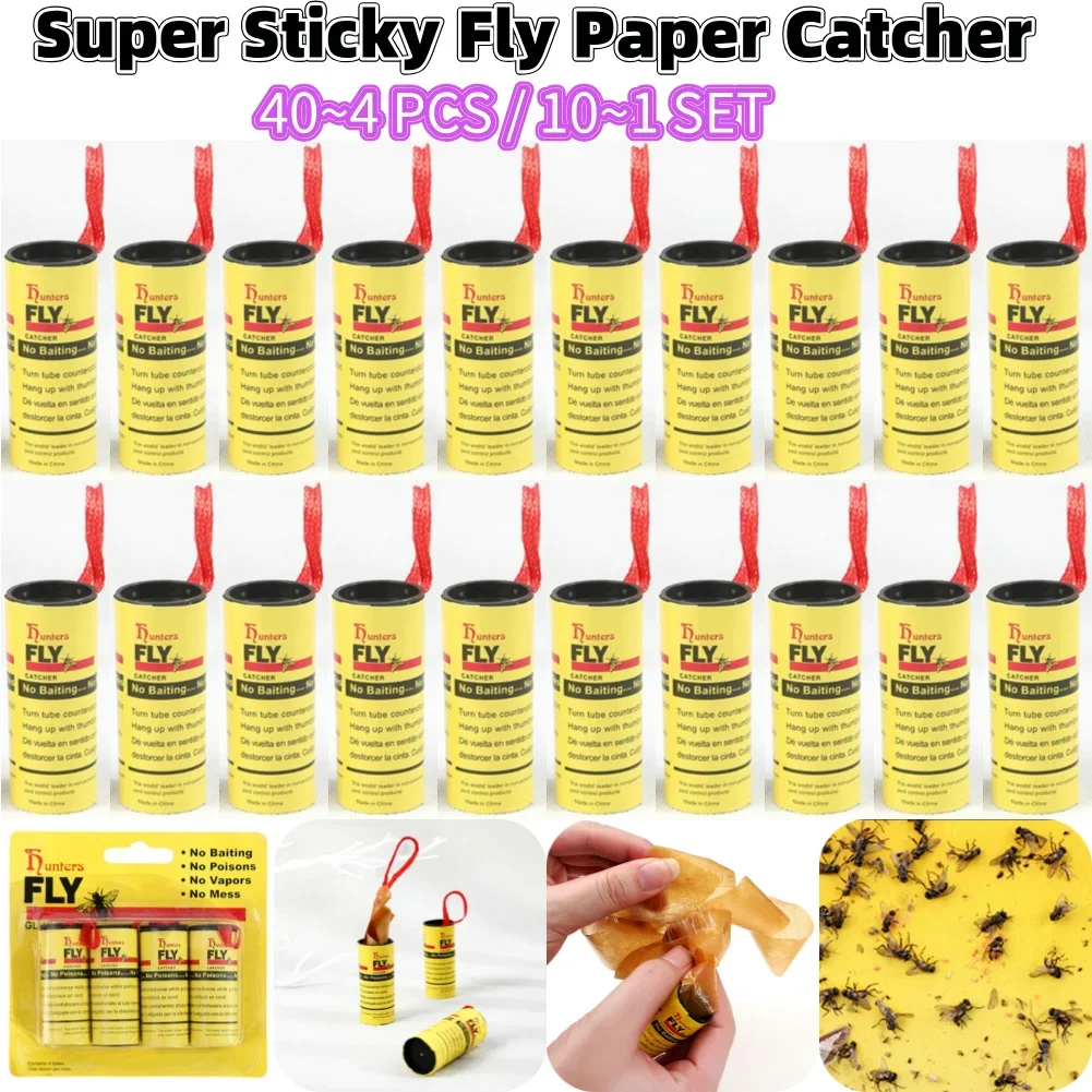 40~4PCS Sticky Fly Paper Disposable Fly Trap Paper Strip Pest Contr...