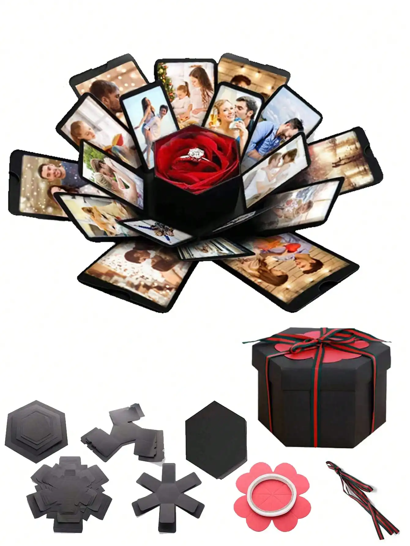 DIY Black Explosion Box Photo Album Scrapbook Handmade Folding Album Memory Box Birthday Valentine's...