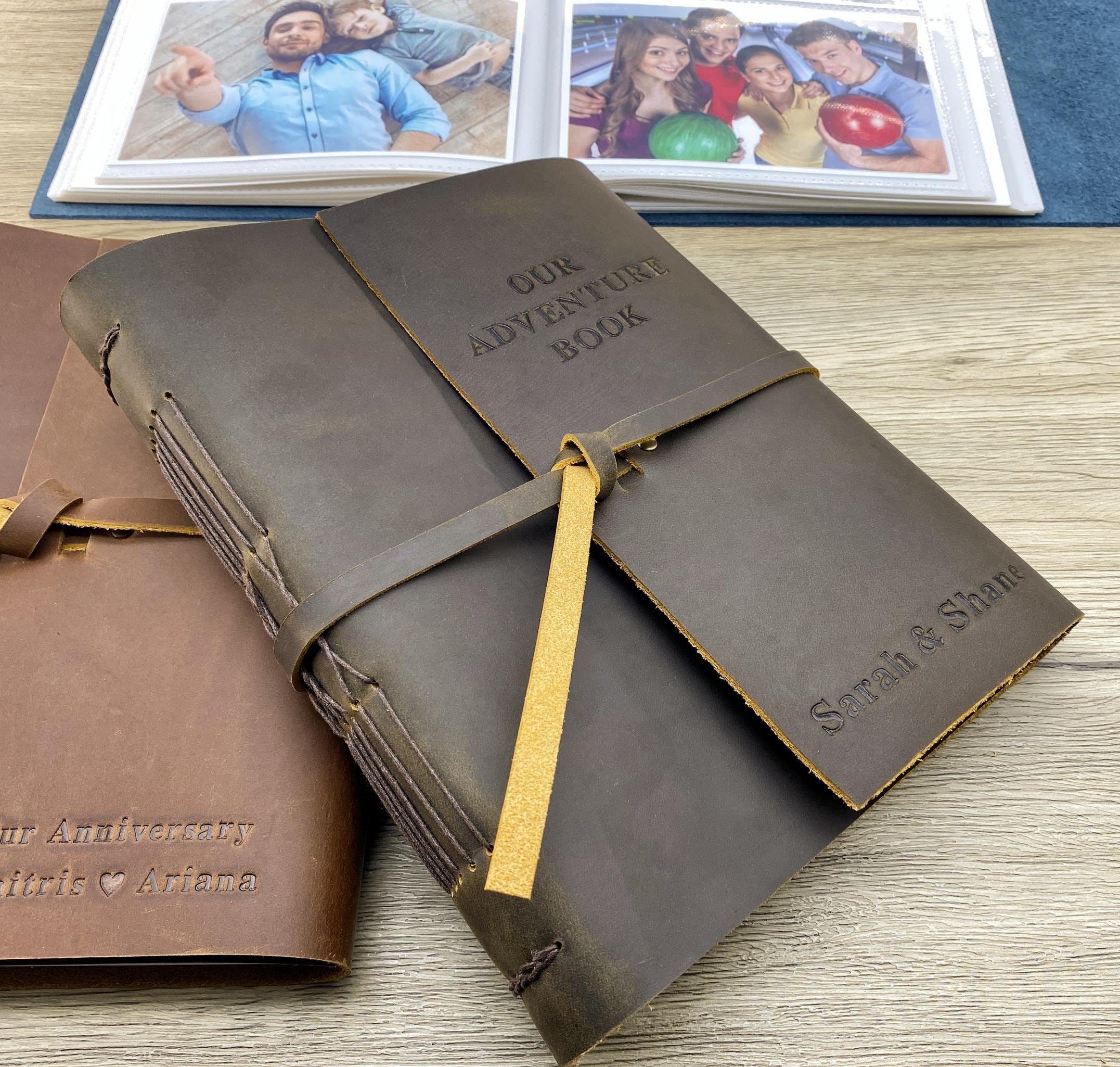 "Handmade Leather Photo Album - \"Our Adventure Book\" Capture life's most precious m...
