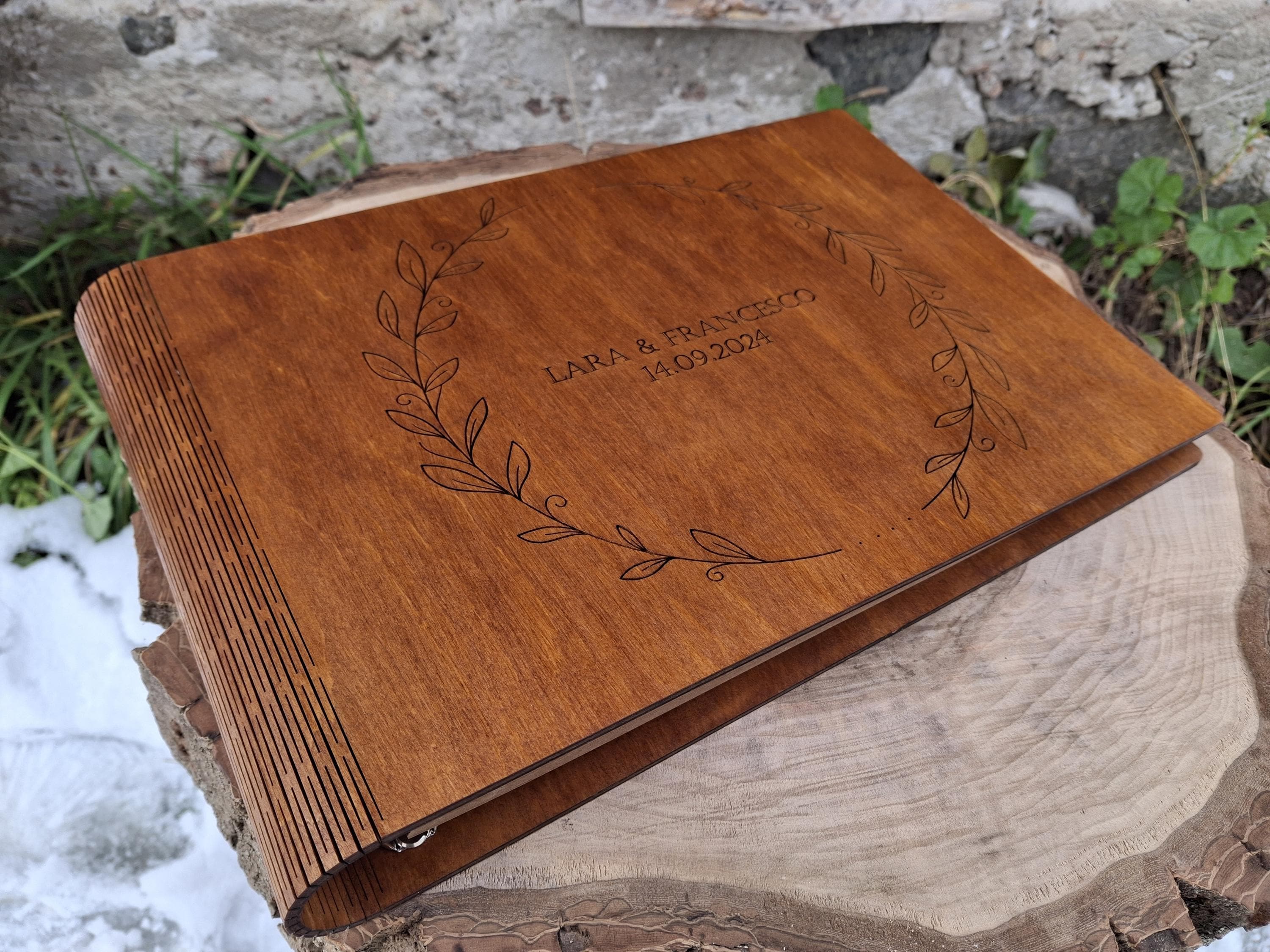 "Wooden memory album Unique photo album Photo album guest Wedding album book Wooden photo album...