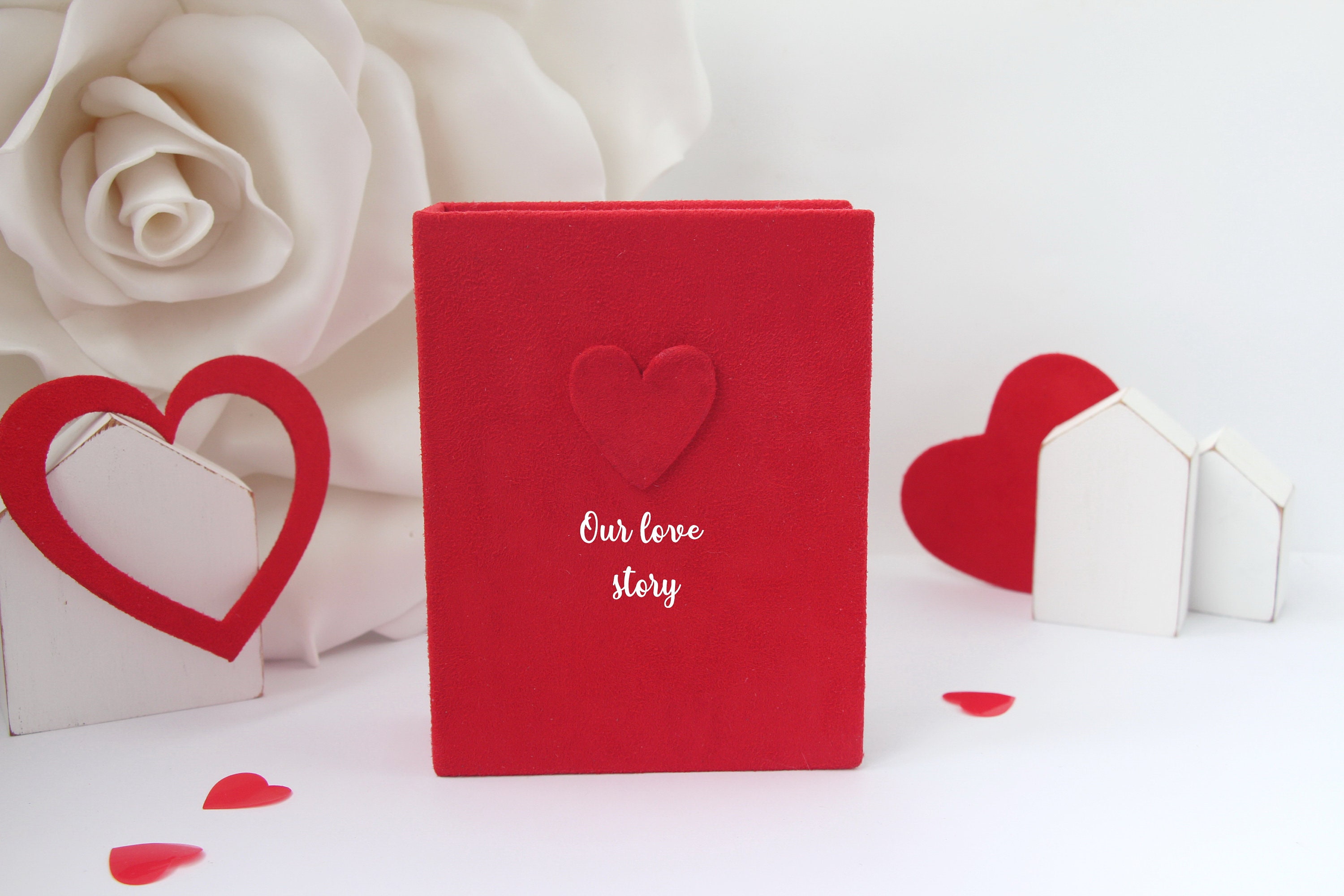 Photo album for Valentine's Day. Wedding photo album with a heart. ...