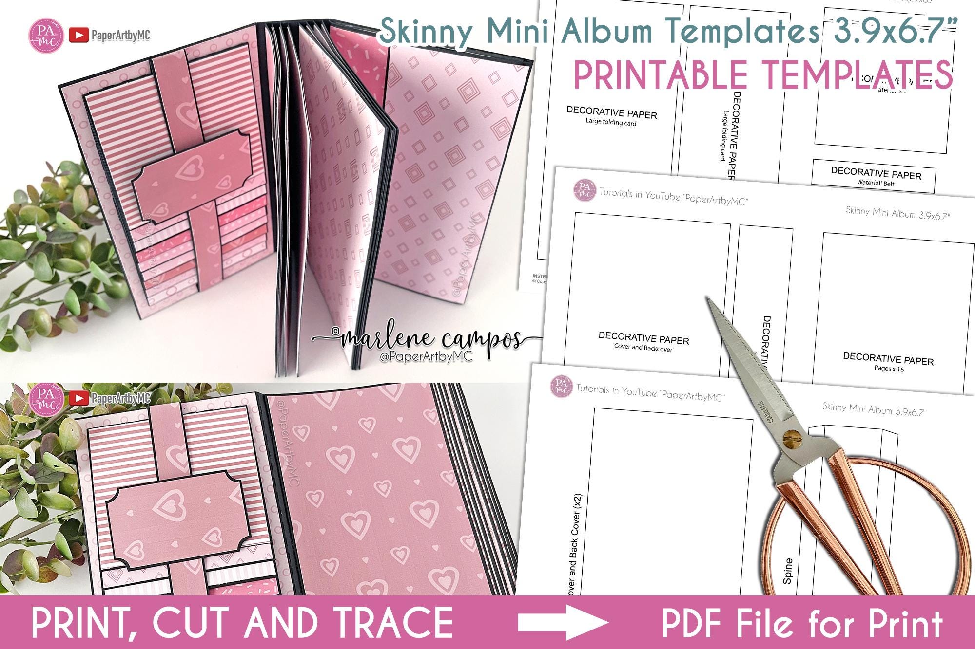"Skinny Mini Album Templates for print, cut and trace on any cardstock or your own decorative p...