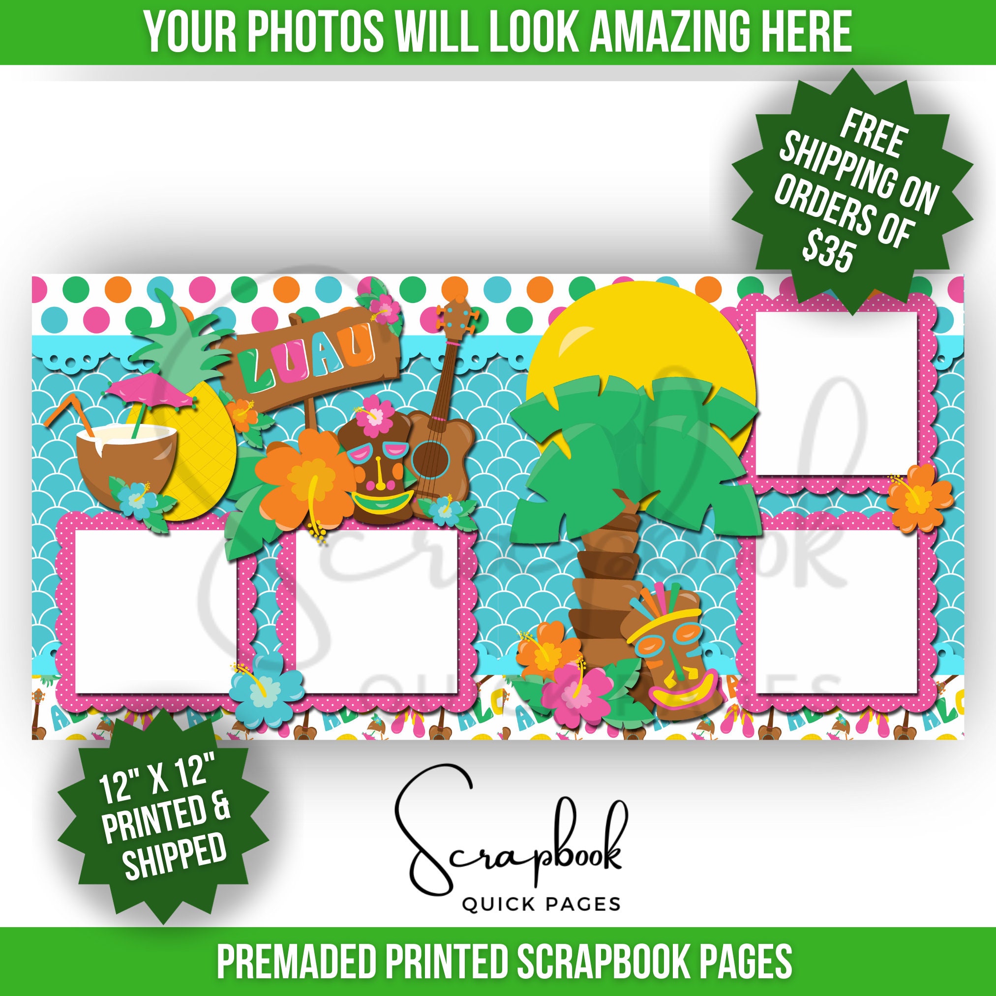 2 Luau PRINTED scrapbook pages 2 PRINTED scrapbook pages Printed and shipped Photo mats sized for 4 ...