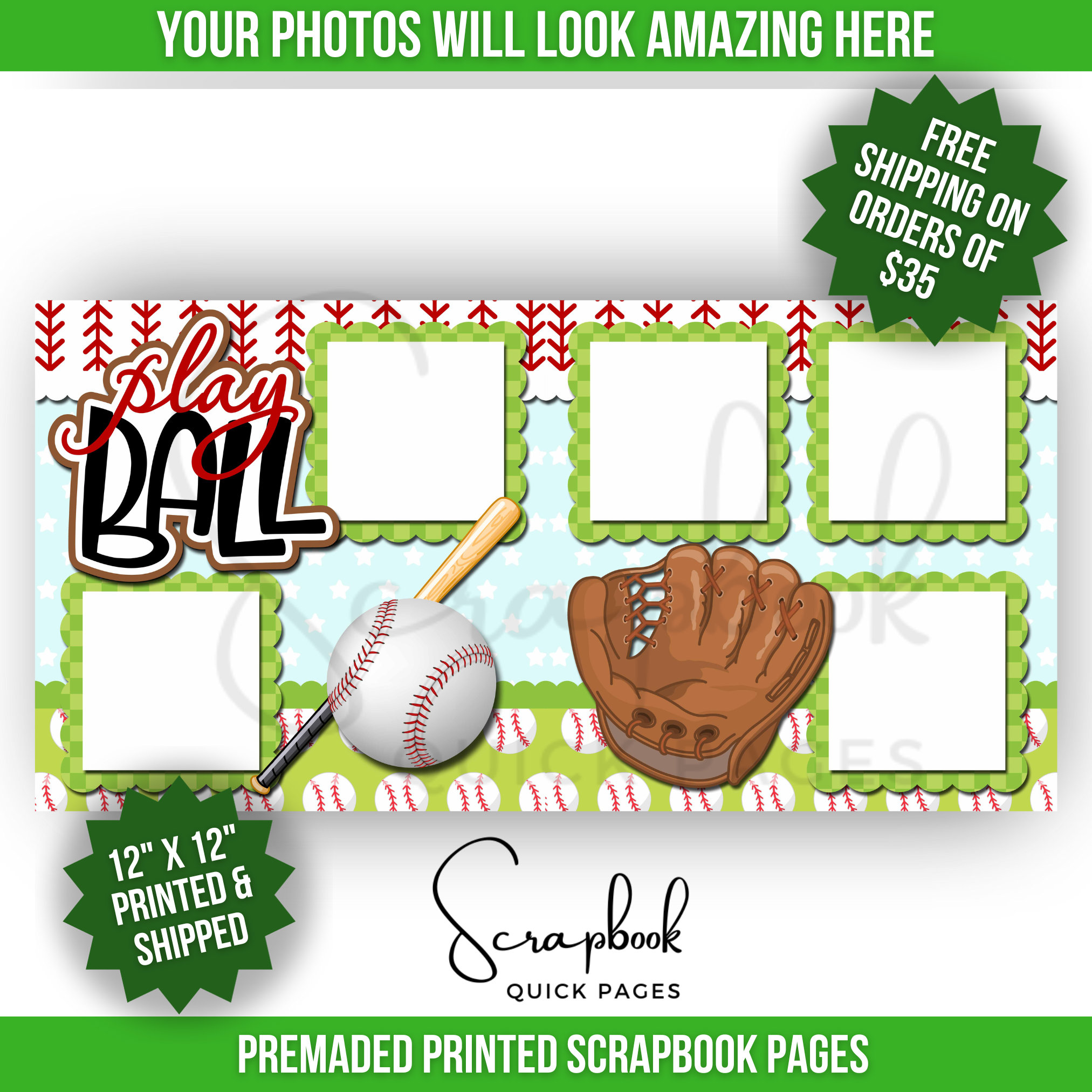 2 Baseball Theme PRINTED scrapbook pages 2 PRINTED scrapbook pages Printed and shipped Photo mats si...