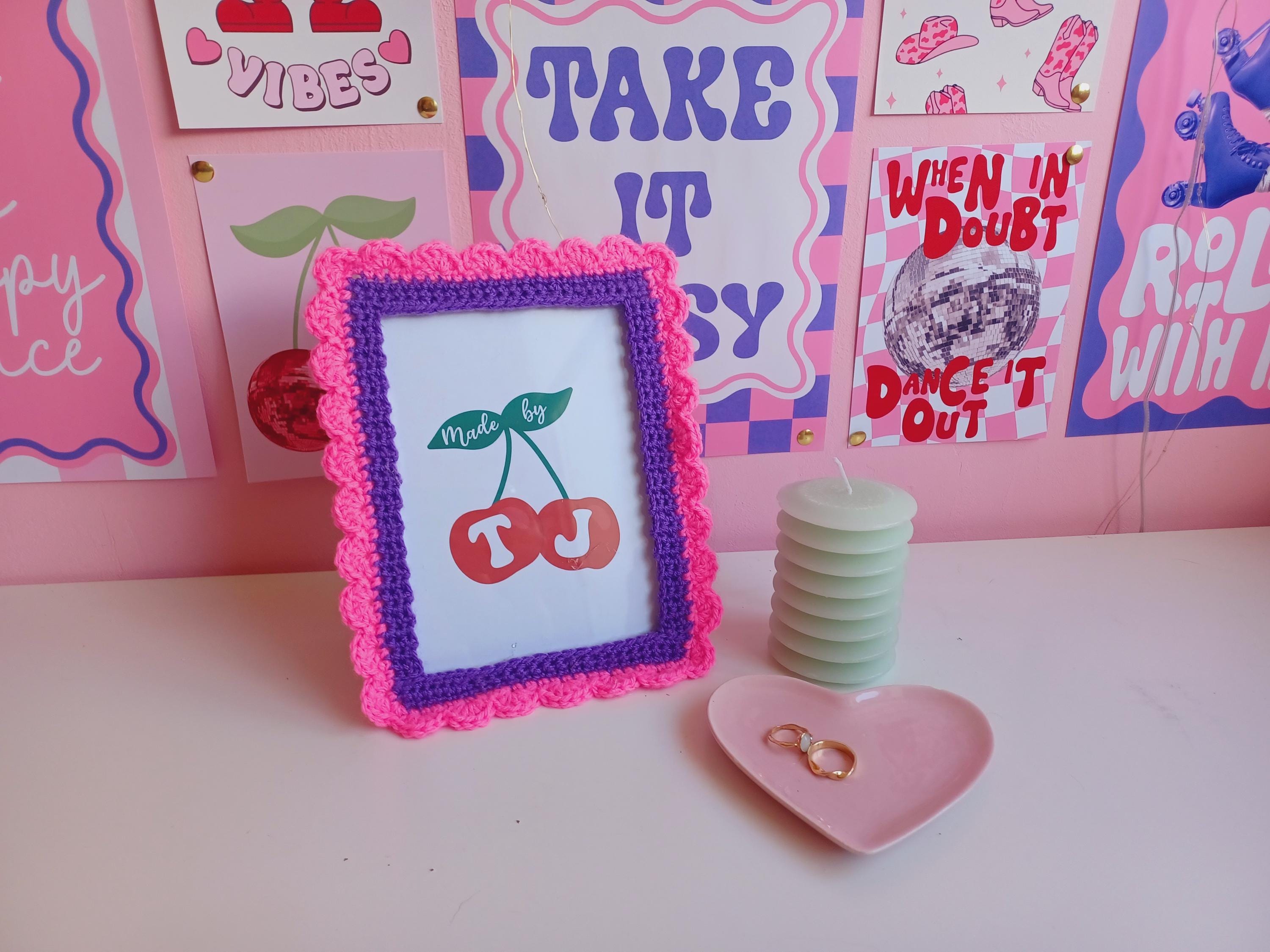 This cute 5 x 7 inch crochet pink and purple frame will add a bright burst of colour to your home. H...