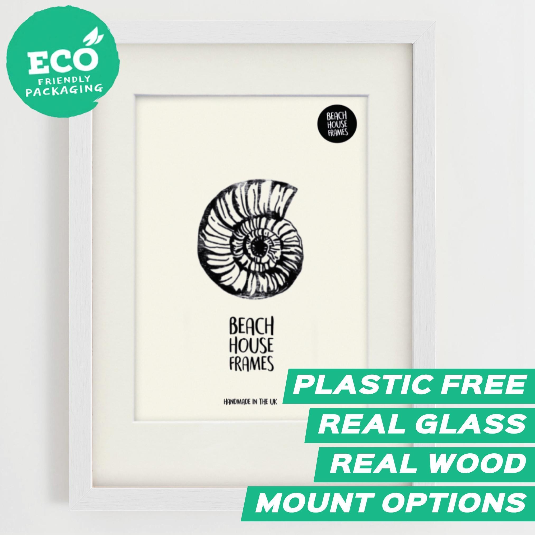 "All our picture frames include REAL GLASS and REAL SOLID WOOD (no MDF, no plastic, no veneers)...