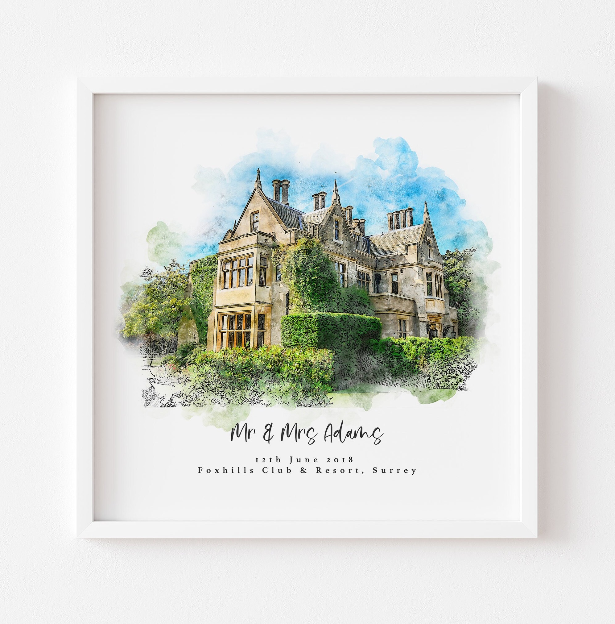Personalised Watercolour Wedding Venue Portrait - Wedding Gift - An...