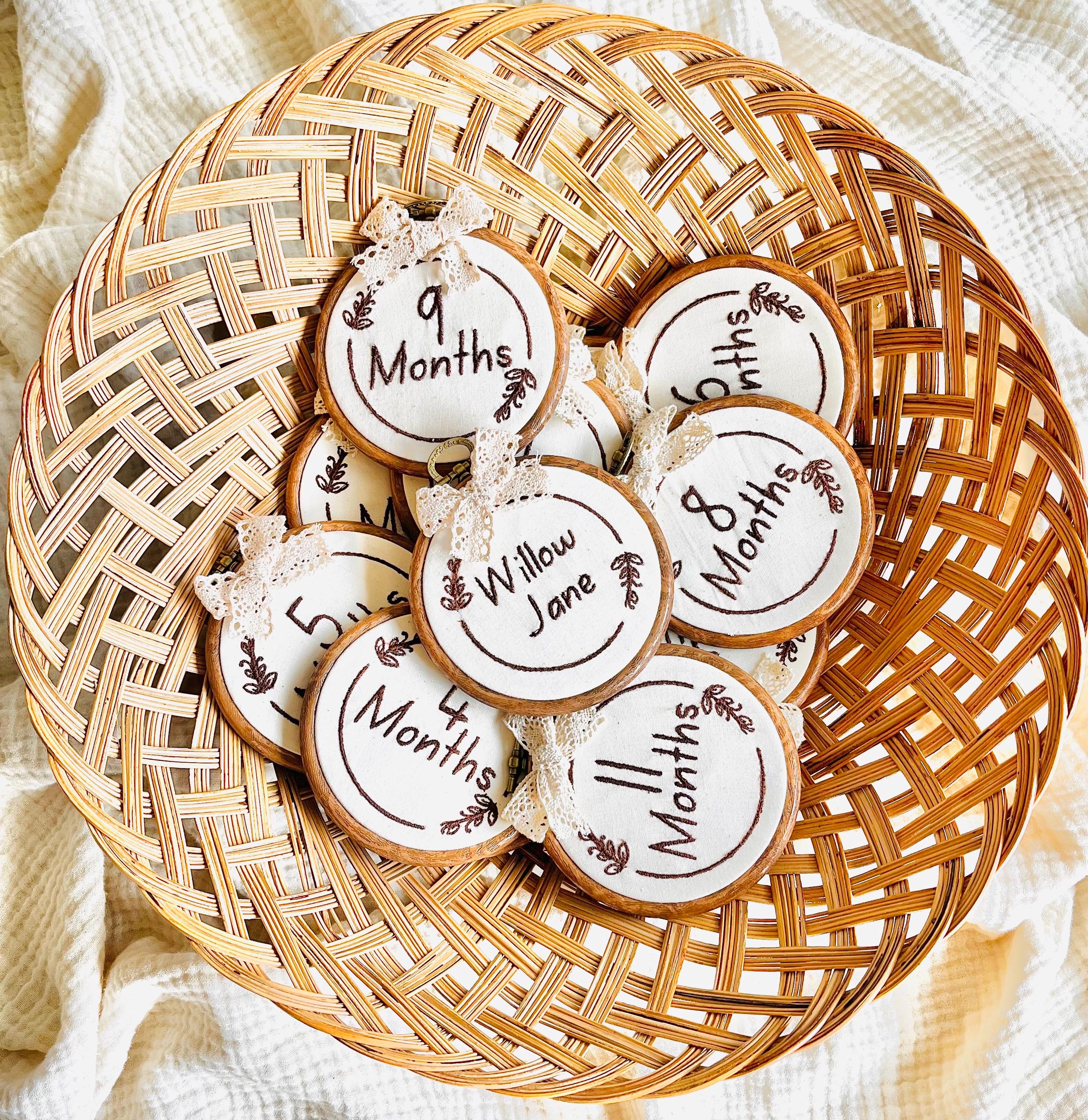 Baby Milestone Hoops - Vintage-Inspired Monthly Milestone Markers for Baby's First Year Photos Captu...