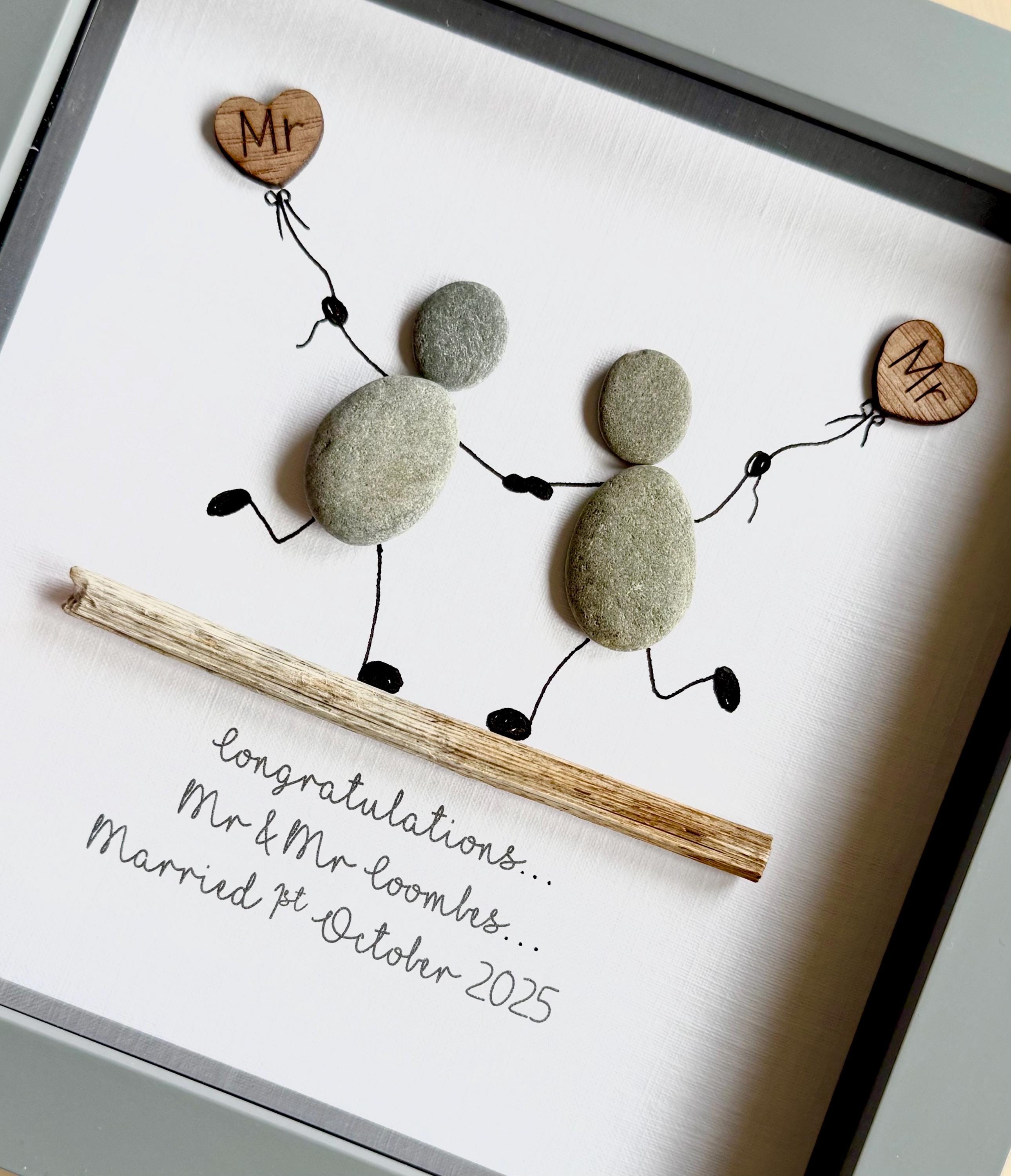 Wedding Pebble Art, Wedding Gift, Wedding Gift idea, Pebble Wedding...