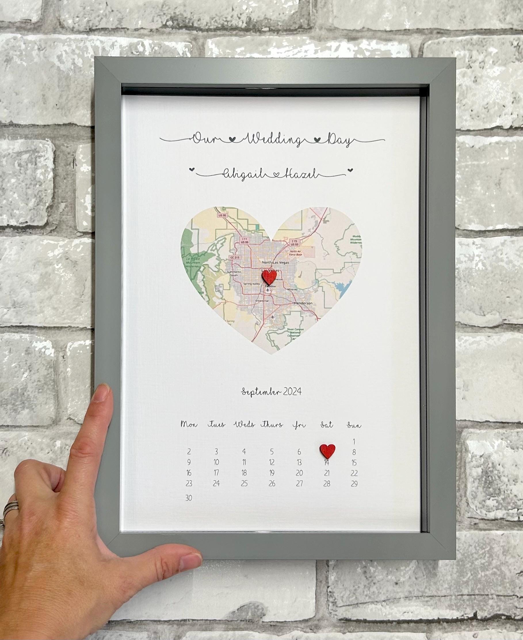 Framed Wedding Map Gift, Personalised Wedding Frame, Wedding Date G...