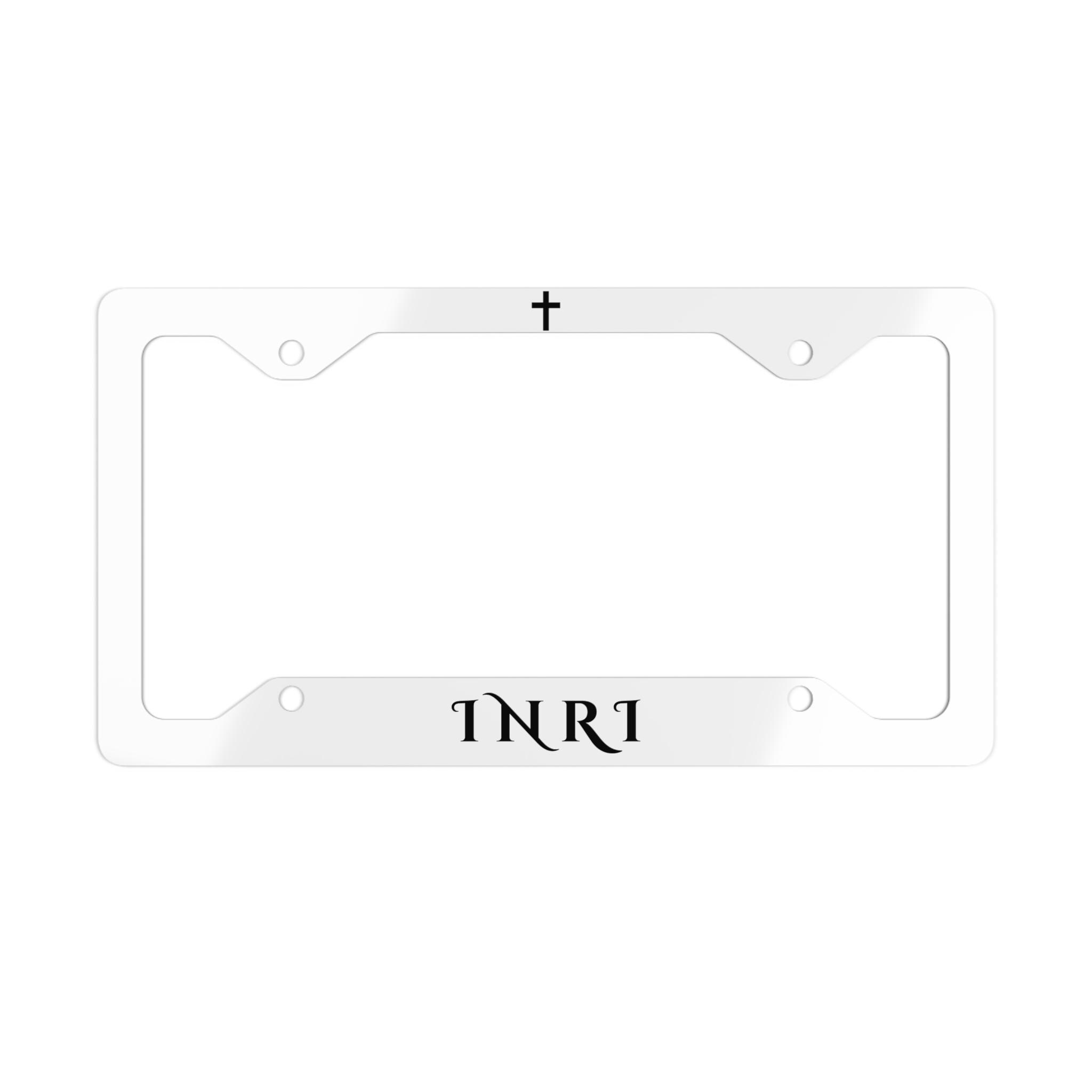 "This inspirational Christian Vanity Plate Frame features I N R I spanning across a clean frame...