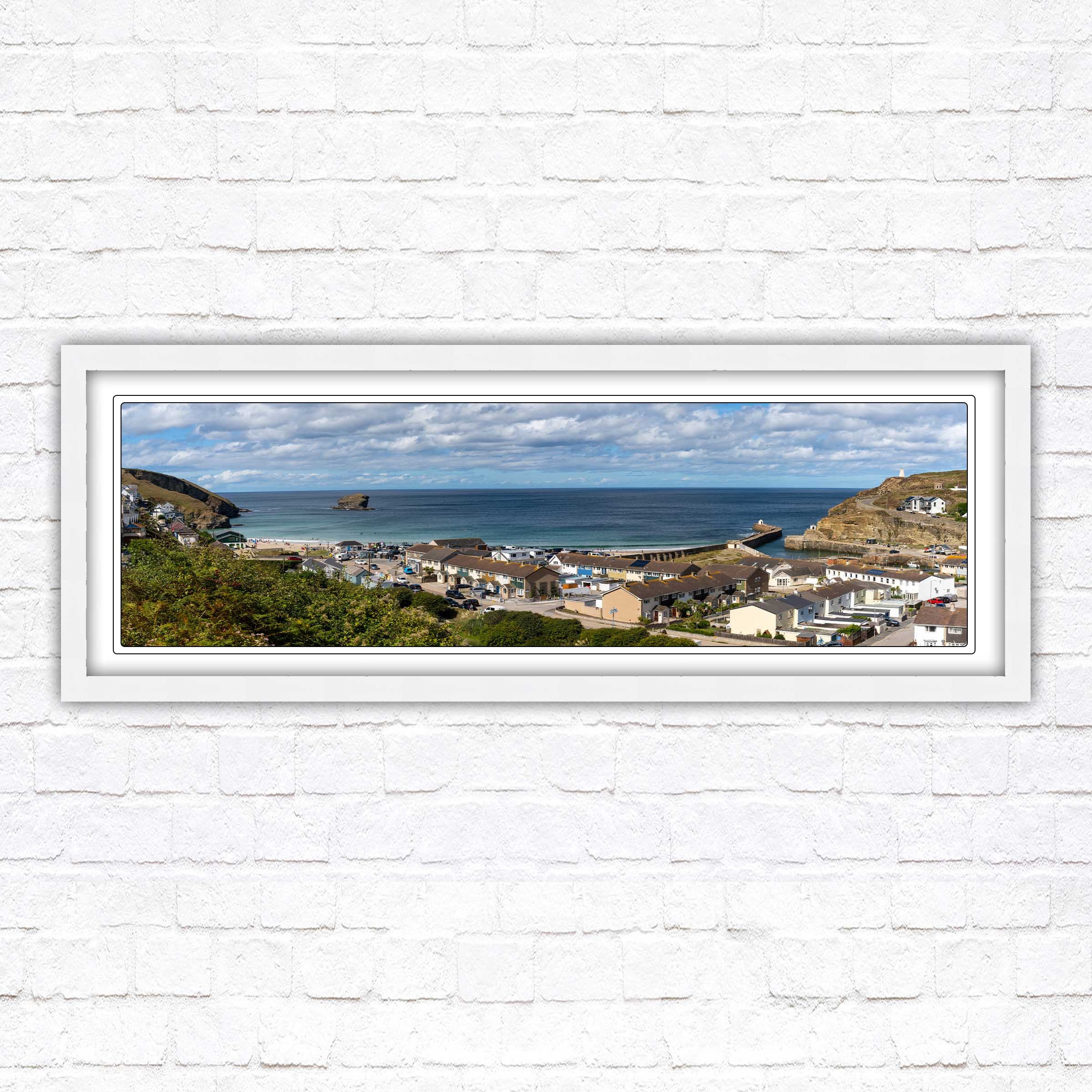 Portreath Harbour Framed Print Cornwall Beach Panoramic Seascape Wa...