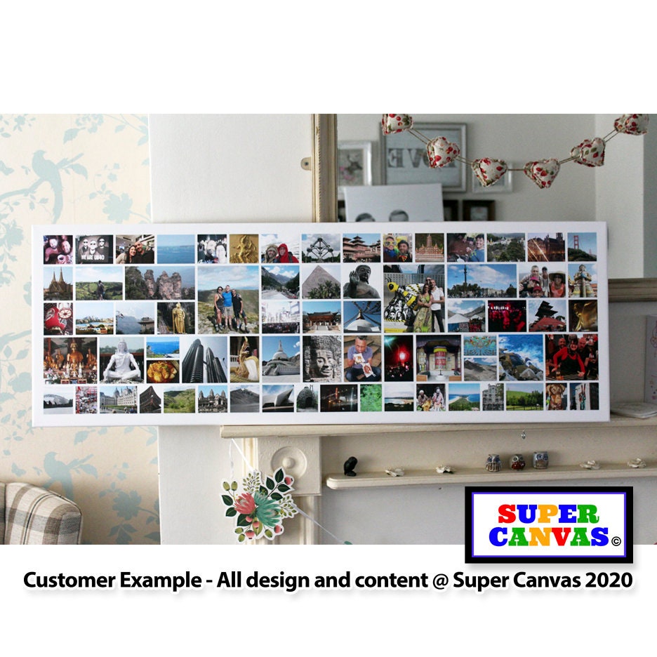 Beautiful 70 Photo Collage Panoramic Canvas Print - Framed & Ready to Hang! Can be personalised ...