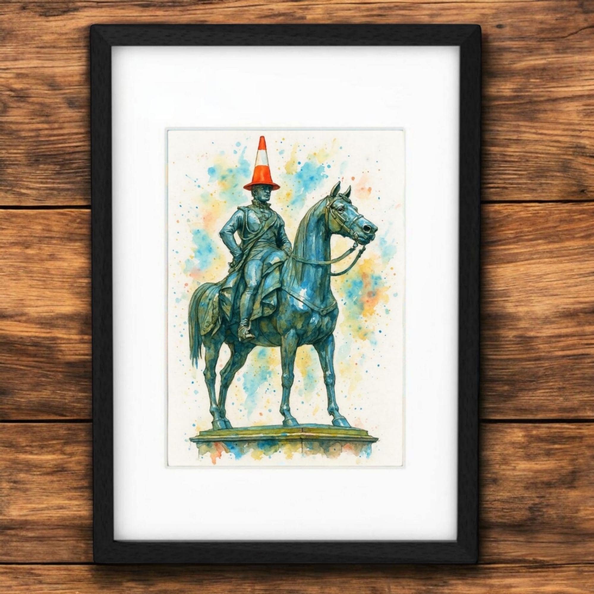 Vibrant framed print of the Duke of Wellington statue in Glasgow. Printed on premium quality paper t...