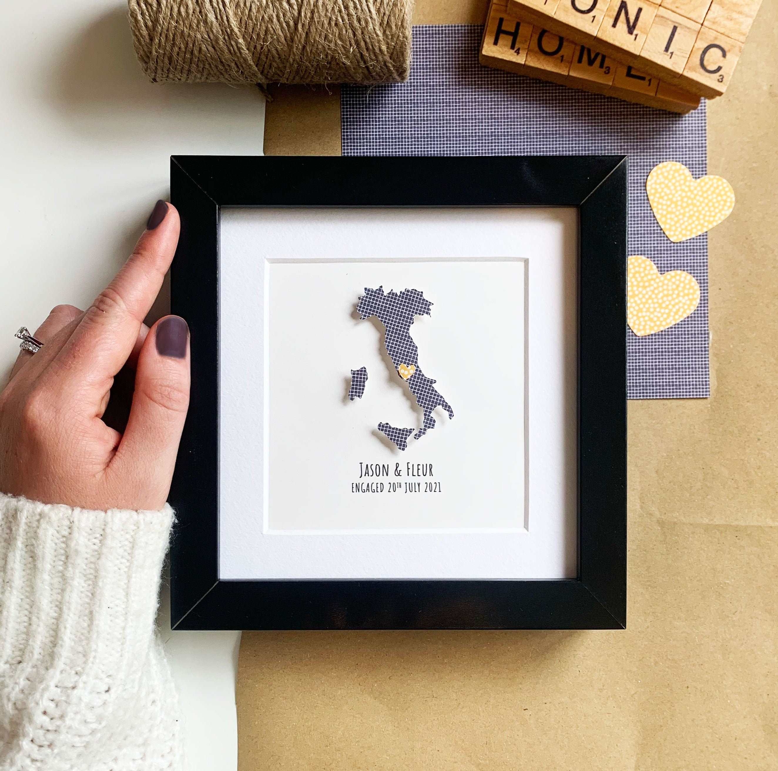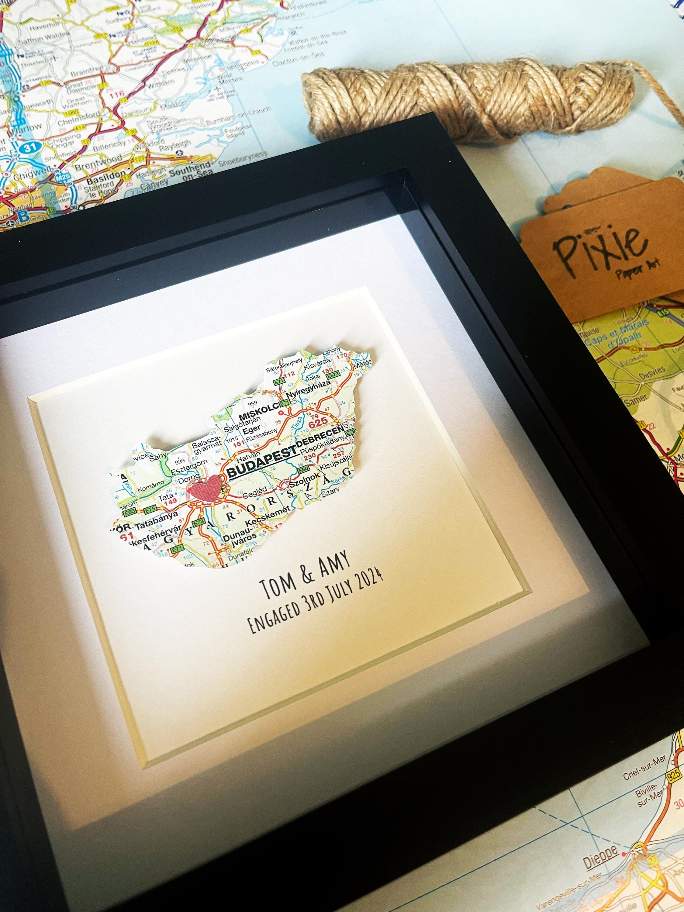 Personalised Engagement Gift, Engagement Location Gift, Box Frame, ...