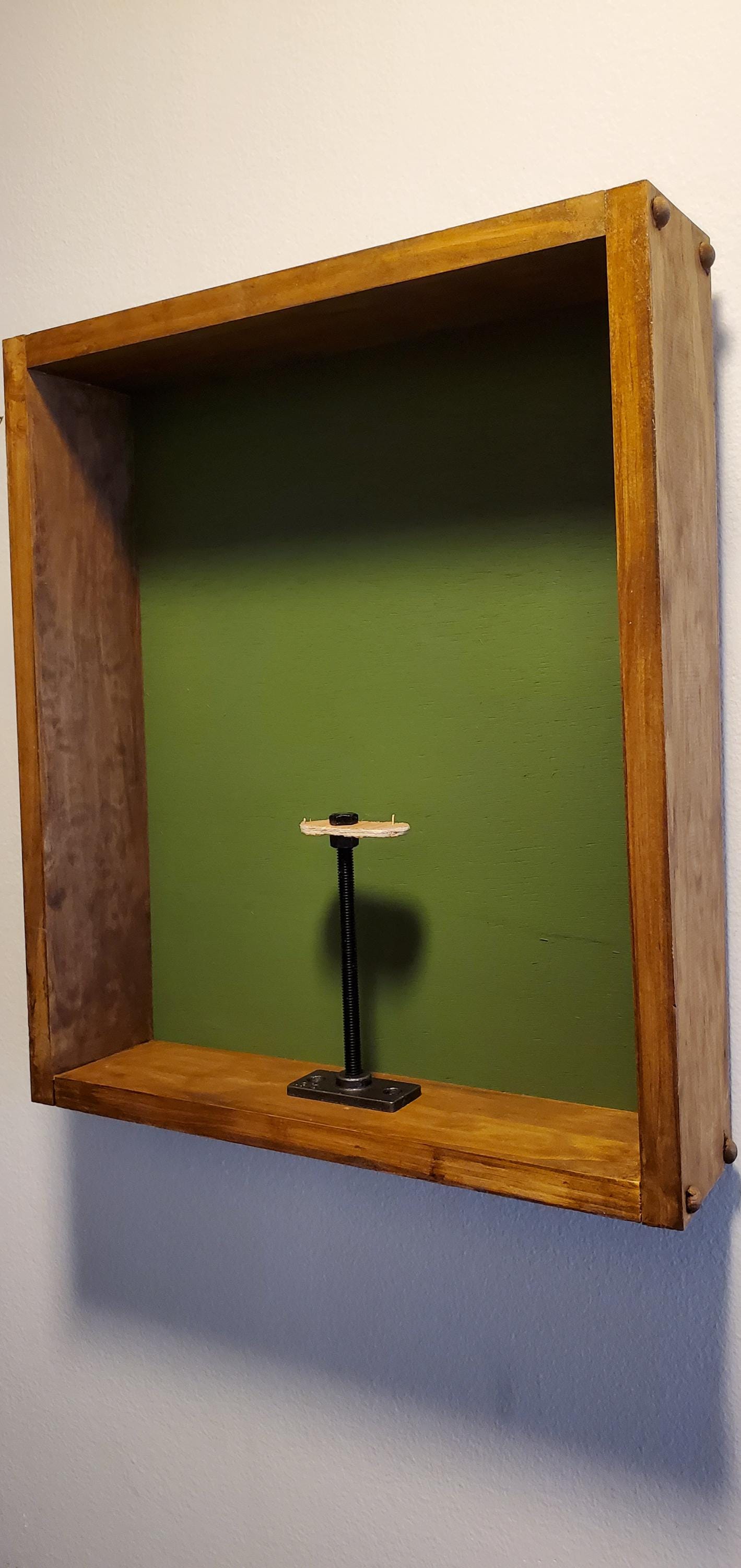 "This LARGE golden oak-stained wooden shadowbox with green backing is the same that I use for m...