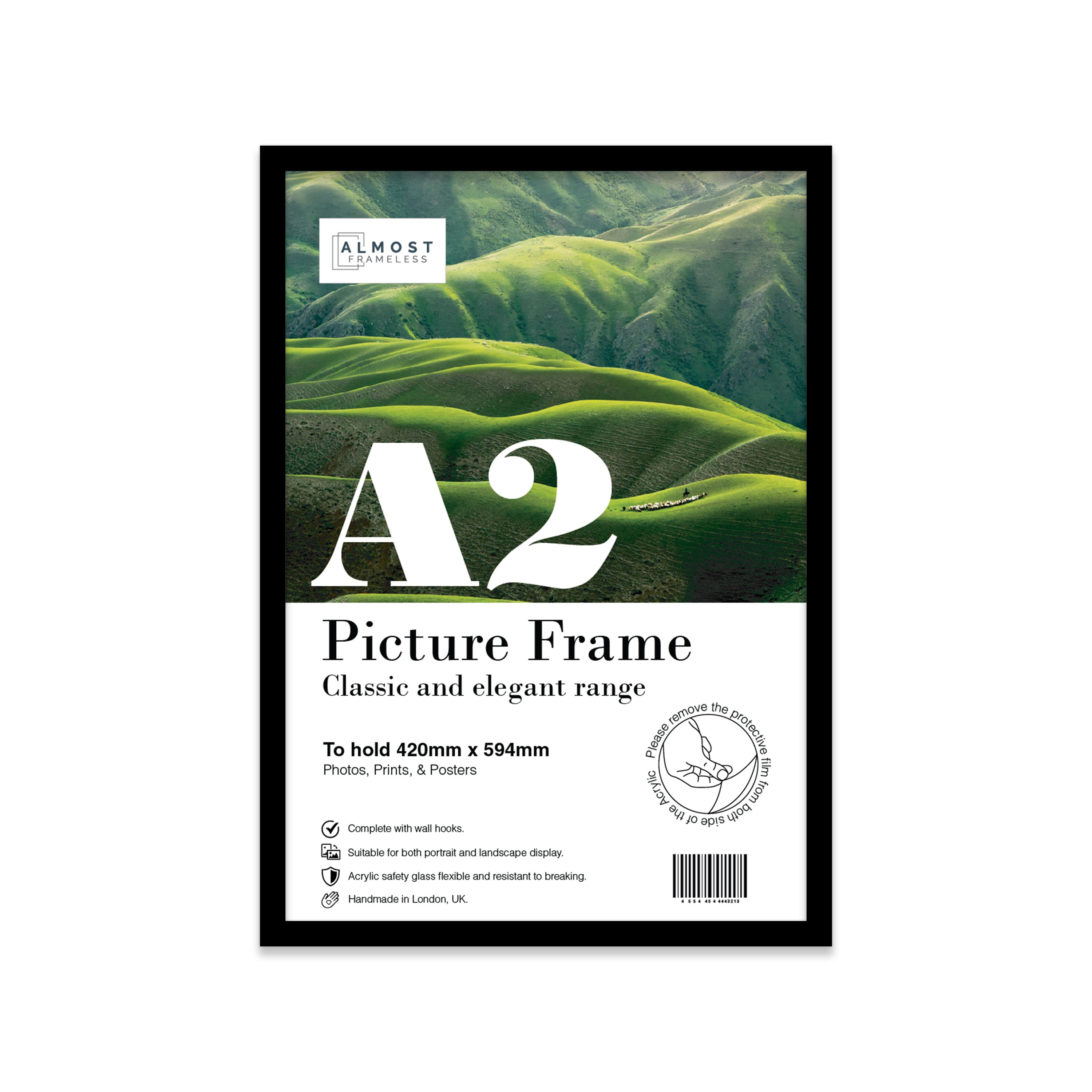 "A modern thin edged A2 black picture frame. There is the option for with and without a mount. ...