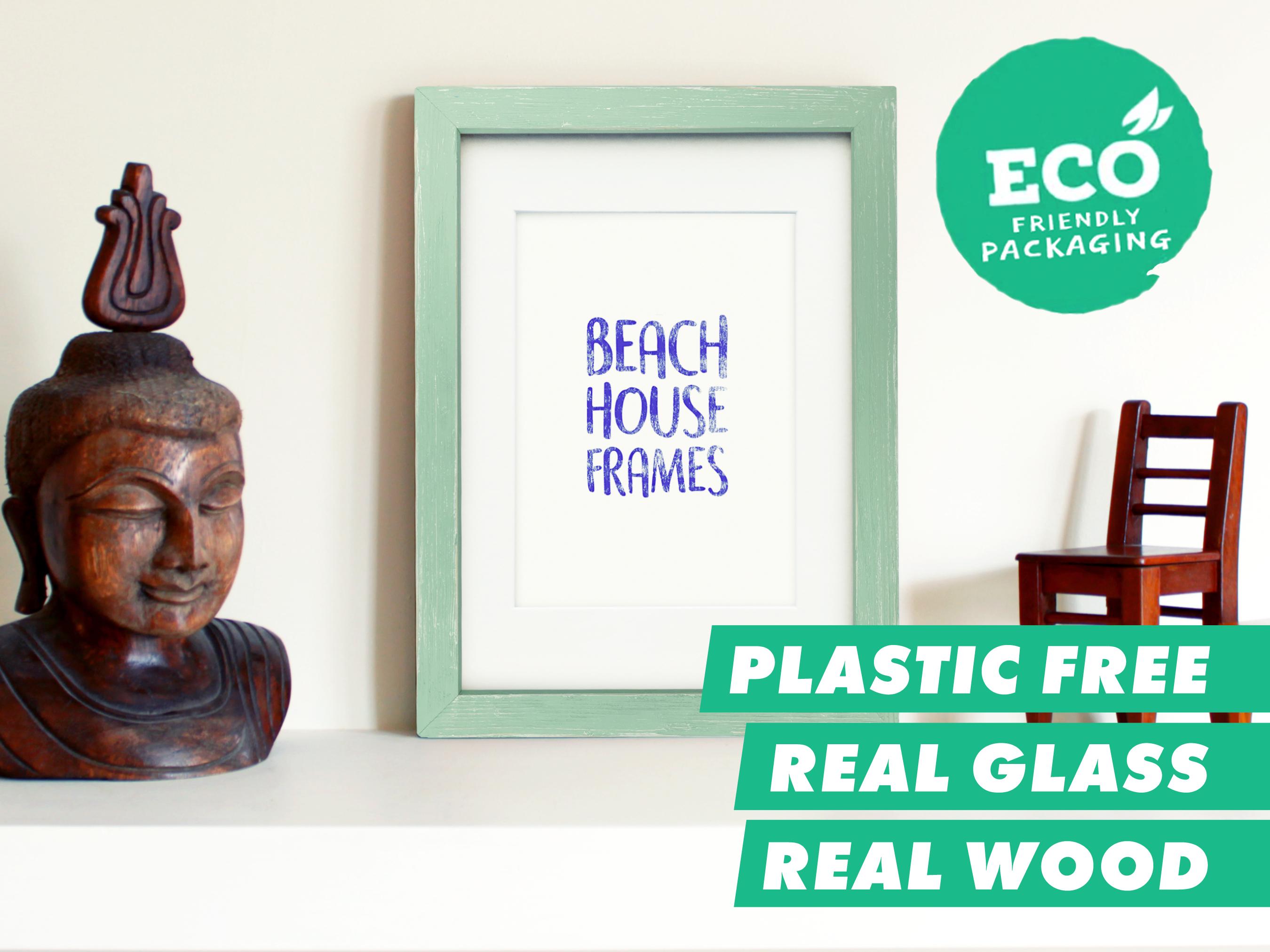 "All our picture frames include REAL GLASS and REAL SOLID WOOD (no MDF, no plastic, no veneers)...